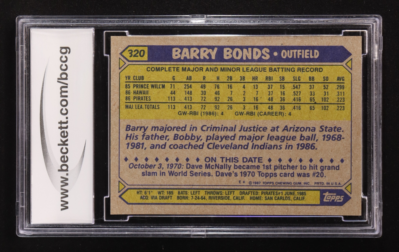 Barry Bonds 1987 Topps #320 RC (BCCG 10)