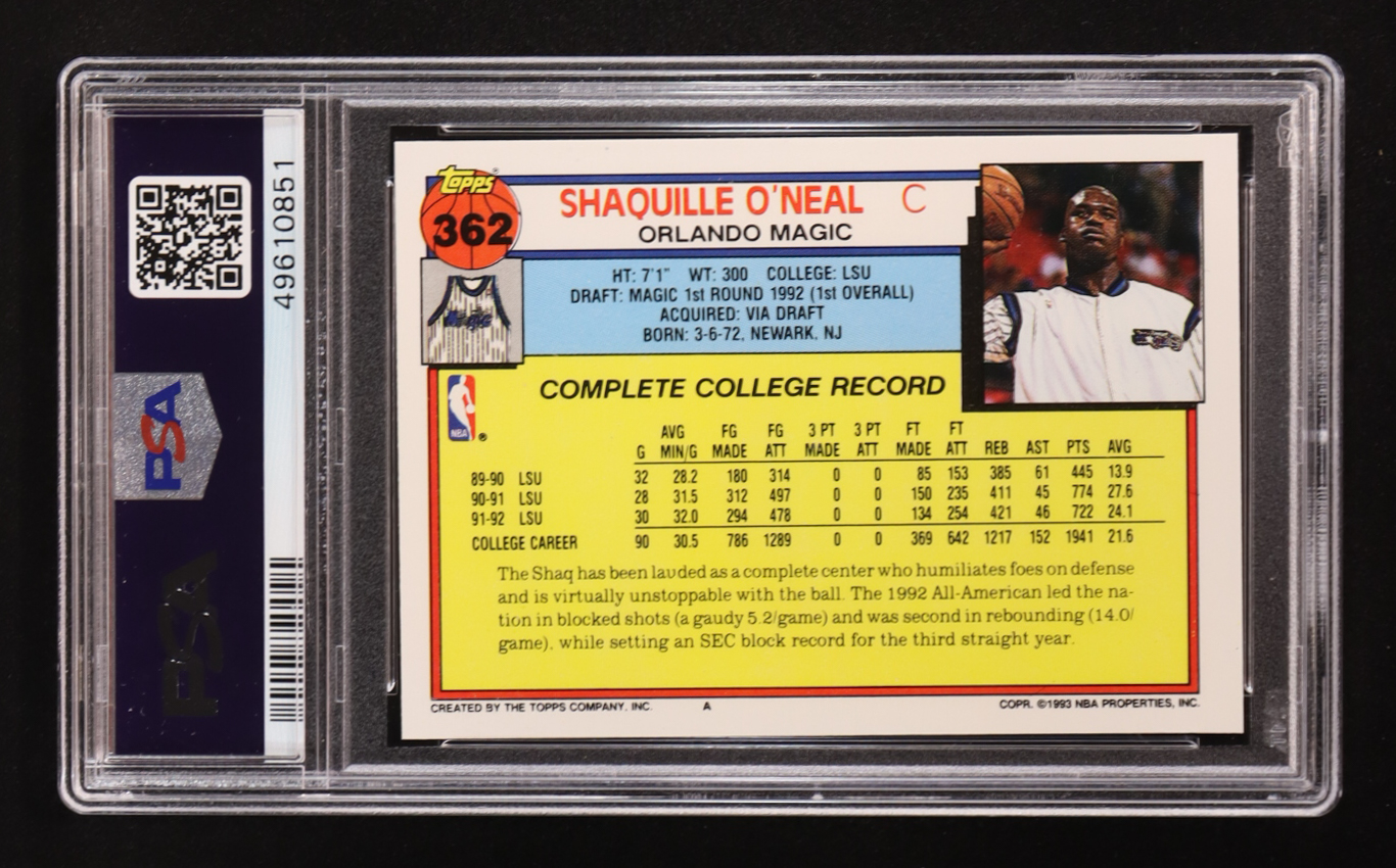 Shaquille O'Neal 1992-93 Topps #362 RC (PSA 9)