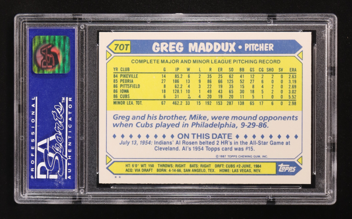 Greg Maddux 1987 Topps Traded #70T RC (PSA 9)