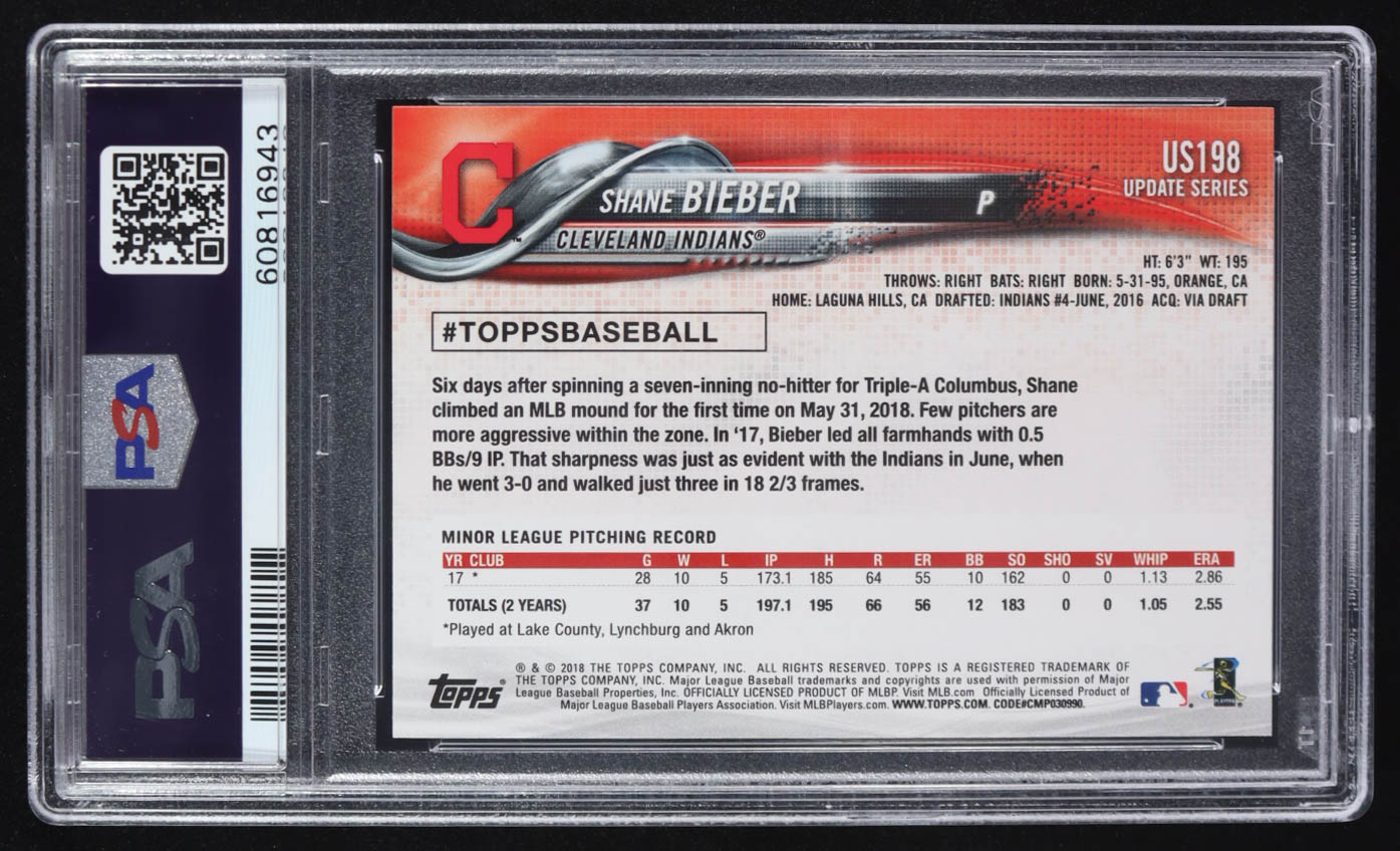 Shane Bieber 2018 Topps Update #US198 RC (PSA 9)