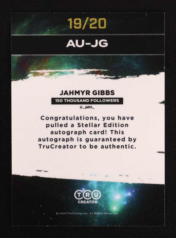 Jahmyr Gibbs 2022 TruCreator Autographs #AU-JG RC #19/20