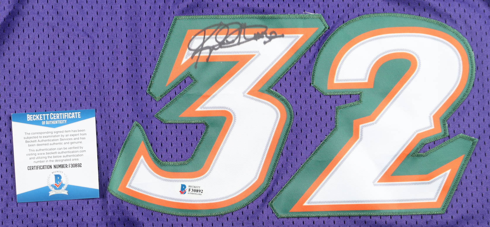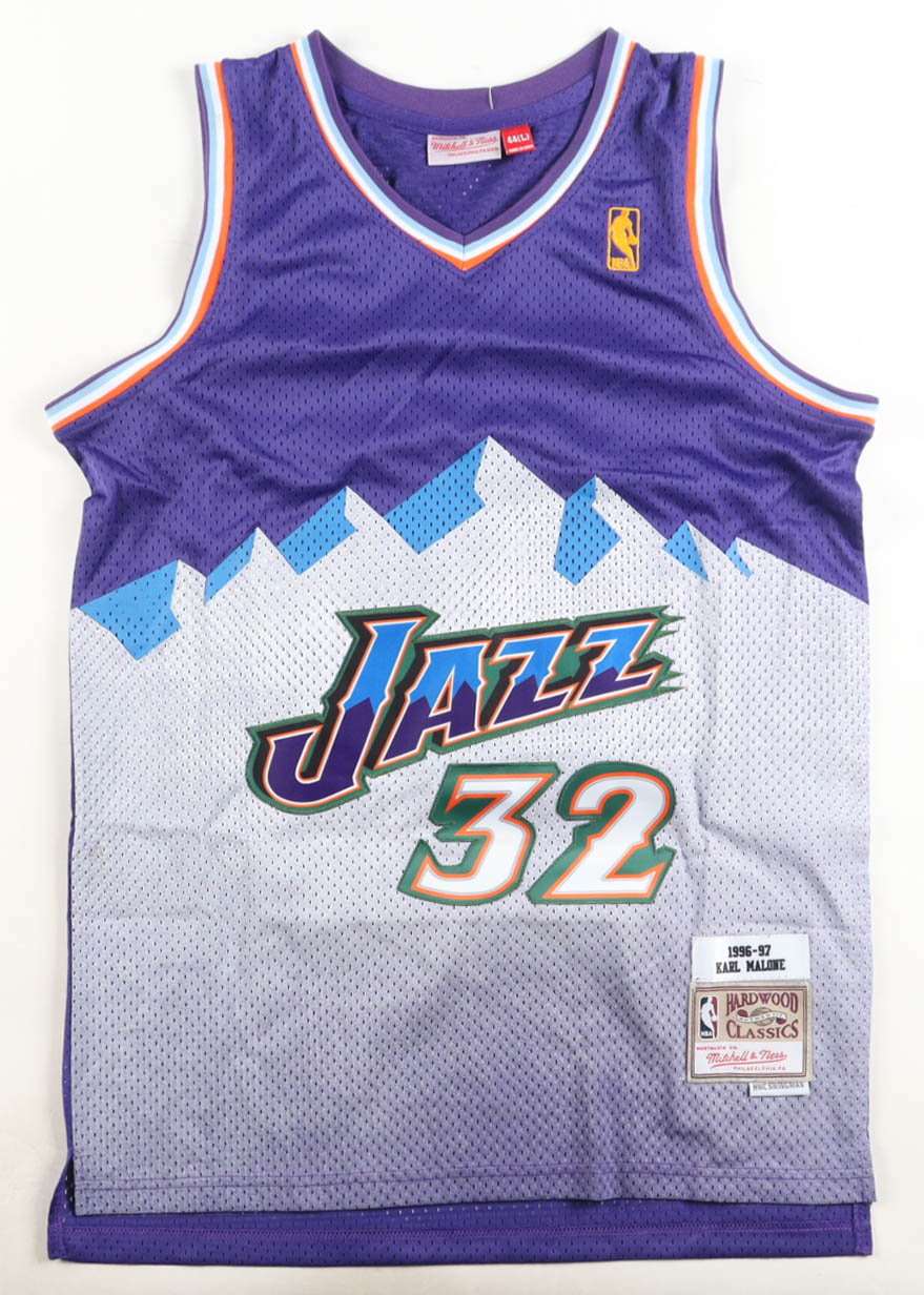 Mitchell & Ness jersey. Everything is sewn on, size 44 (L). Hand-signed by Karl Malone (Utah Jazz, HOF).