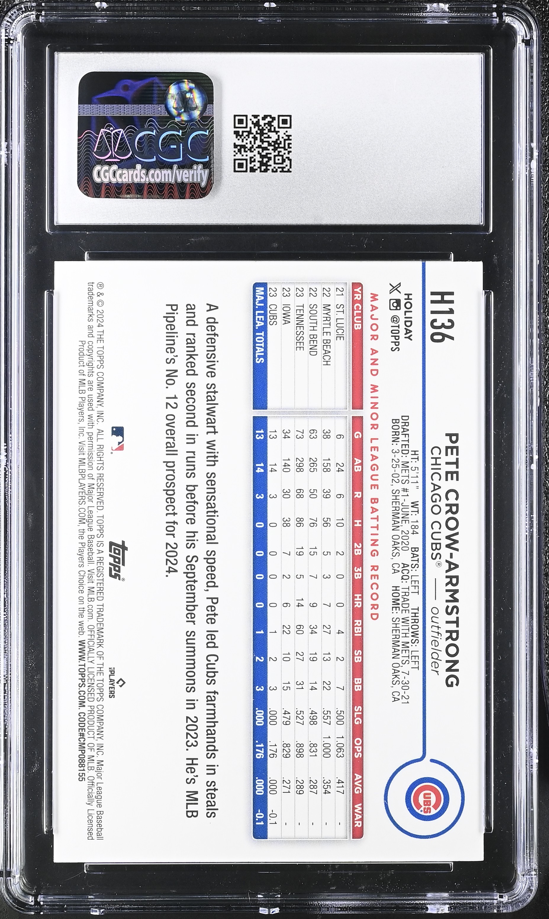 Pete Crow-Armstrong 2024 Topps Holiday Photo Variations #H136 RC (CGC 9)