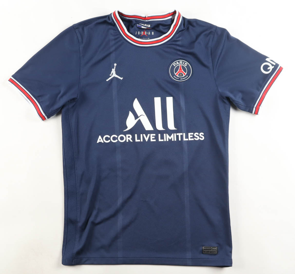 Jordan authentic jersey with everything pressed and sewn on, size S. Hand-signed and inscribed by Lionel Messi (Paris Saint-Germain FC).