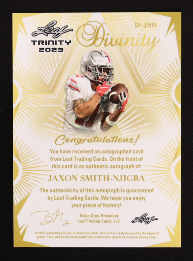 Jaxon Smith-Njigba 2023 Leaf Trinity Divinity Gold #DJSN #03/10