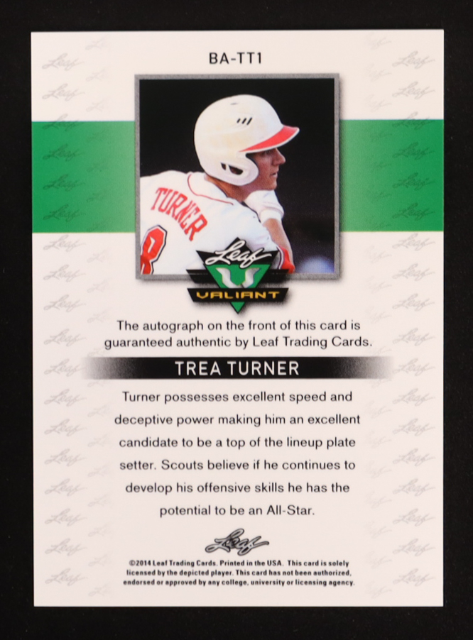 Trea Turner 2014 Leaf Valiant Autographs Green #BA-TT1 RC