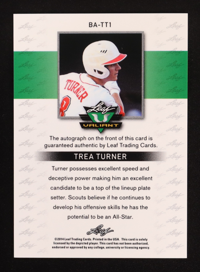 Trea Turner 2014 Leaf Valiant Autographs Green #BA-TT1 RC