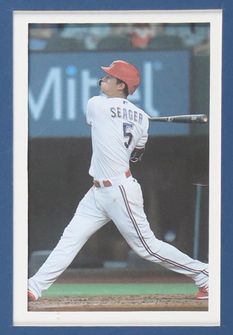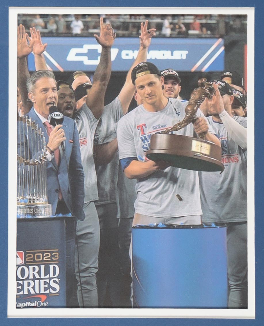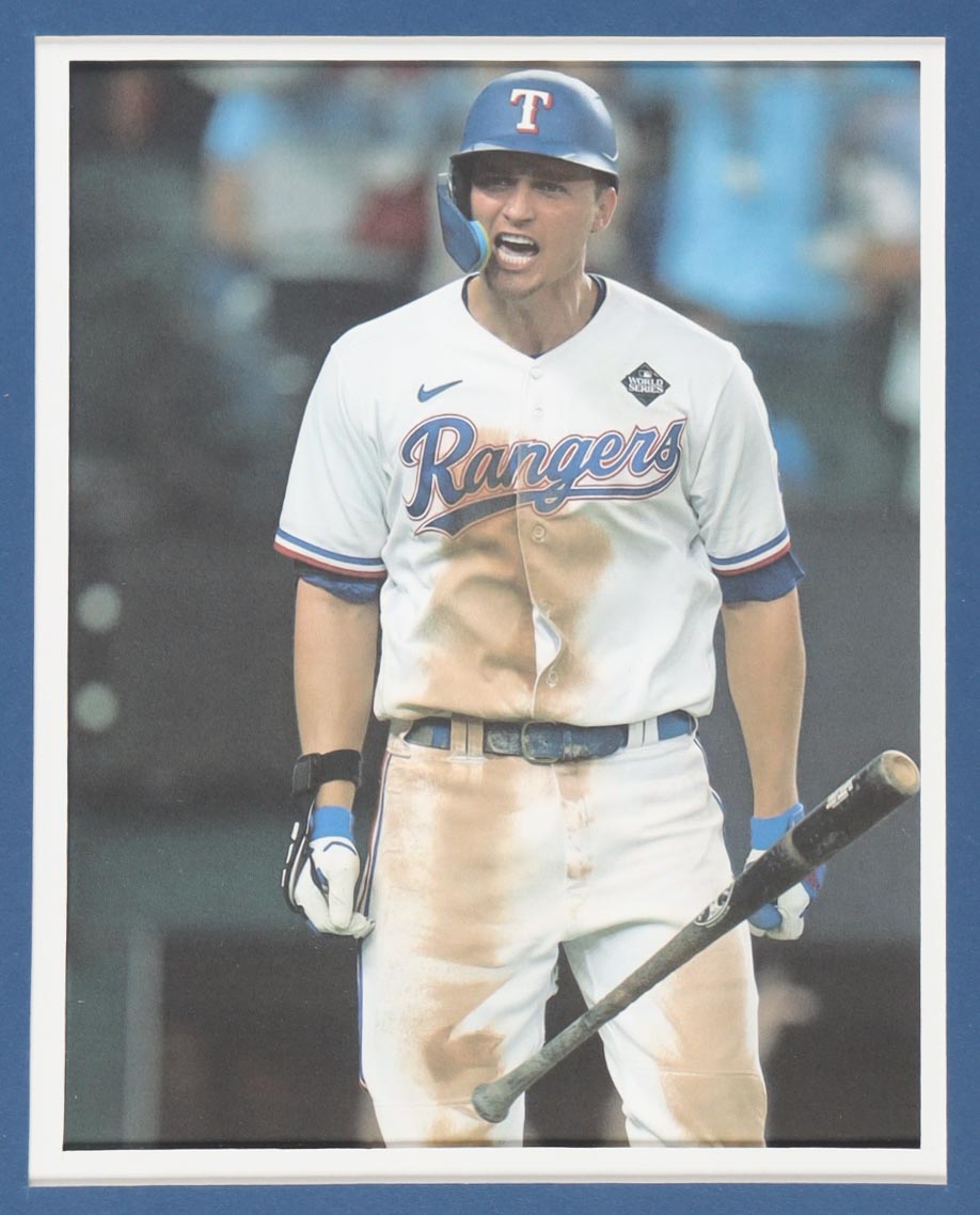 Custom frame measures 34" x 42" in size and features a custom jersey that has been hand-signed by Corey Seager (Texas Rangers). Please refer to photos regarding the condition of the item.