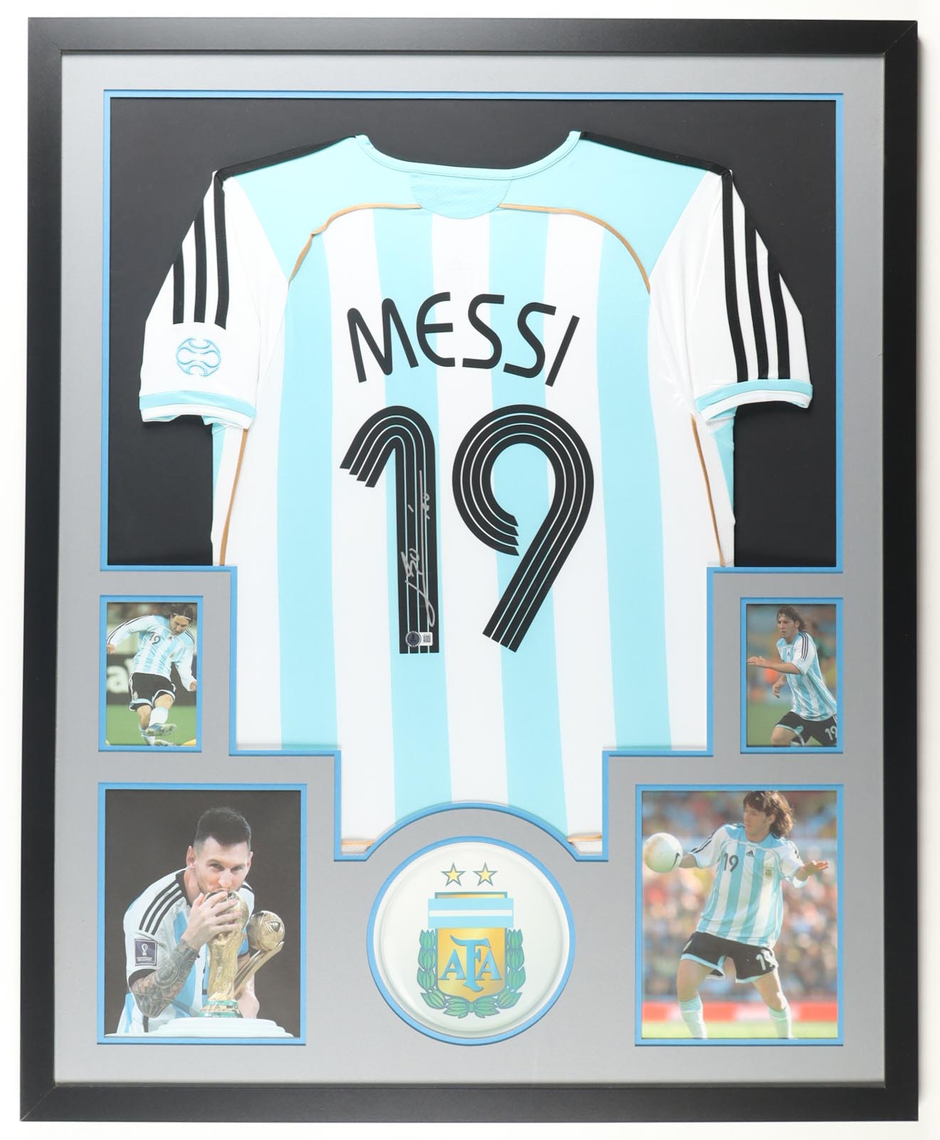 Lionel Messi Signed Custom Framed Argentina Authentic Adidas Jersey Display with Photos (Beckett)