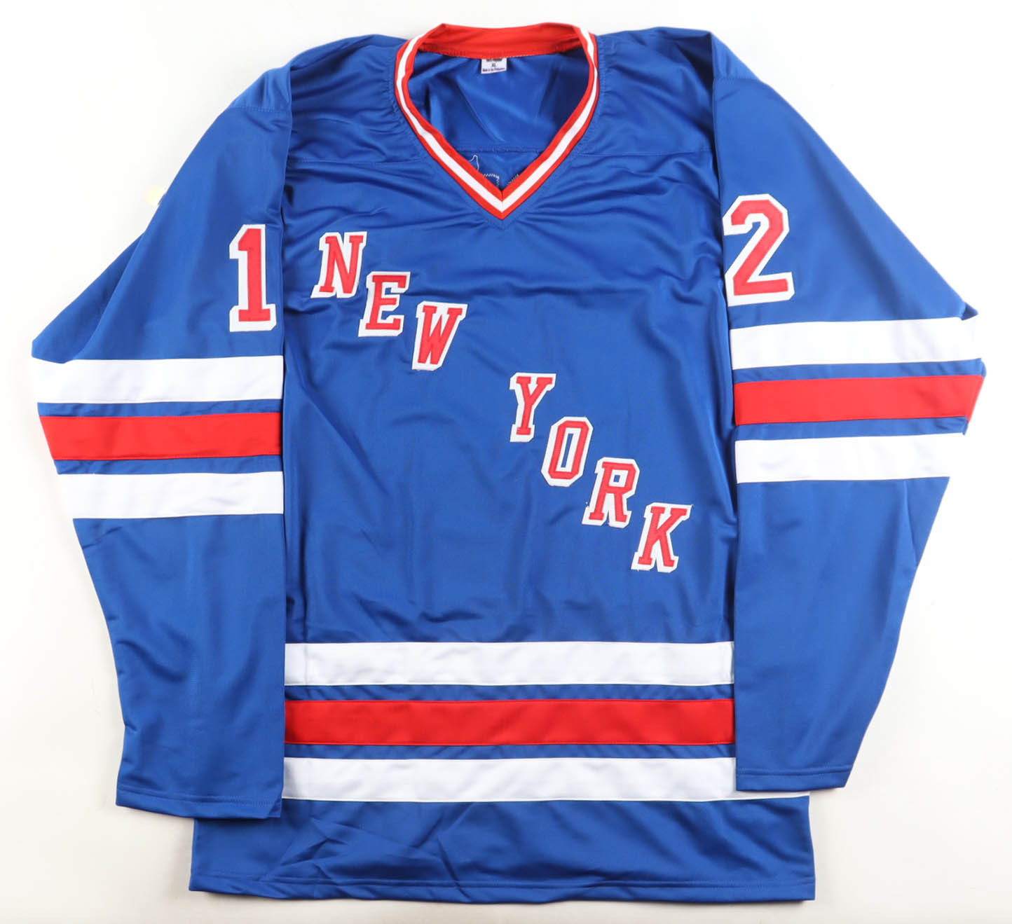 Custom jersey with everything sewn on, size XL. Hand-signed by Eddie Olczyk.