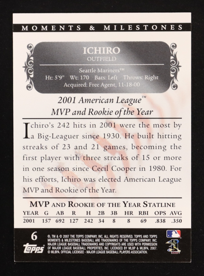 Ichiro Suzuki 2007 Topps Moments and Milestones Black #6 Hit 97 #20/29