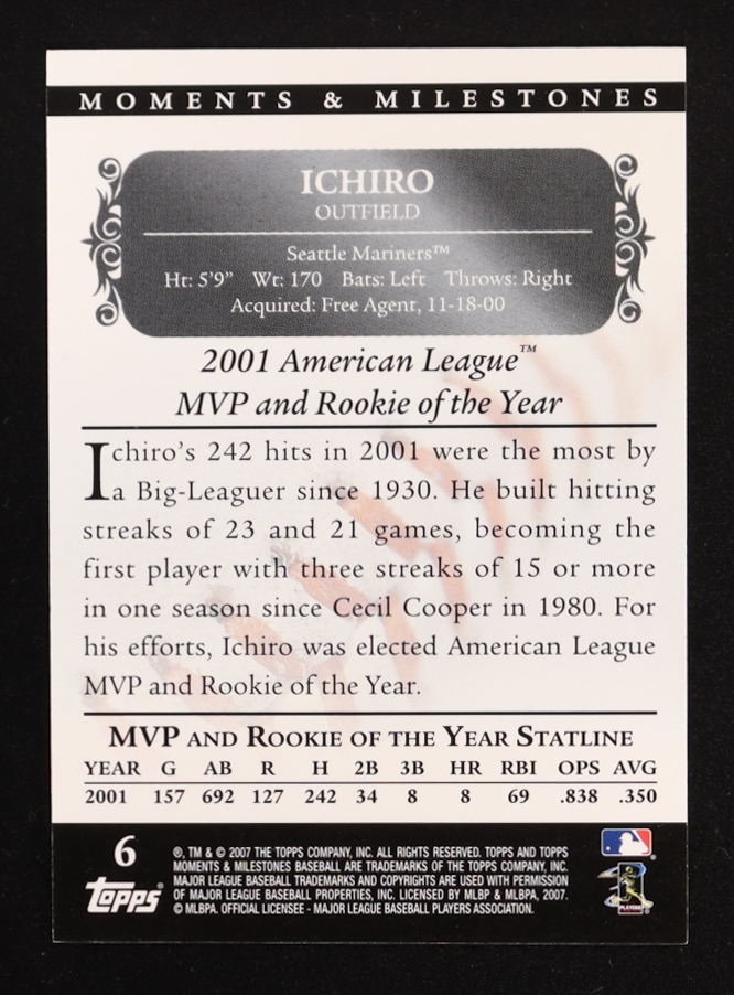 Ichiro Suzuki 2007 Topps Moments and Milestones Black #6 Hit 35 #10/29