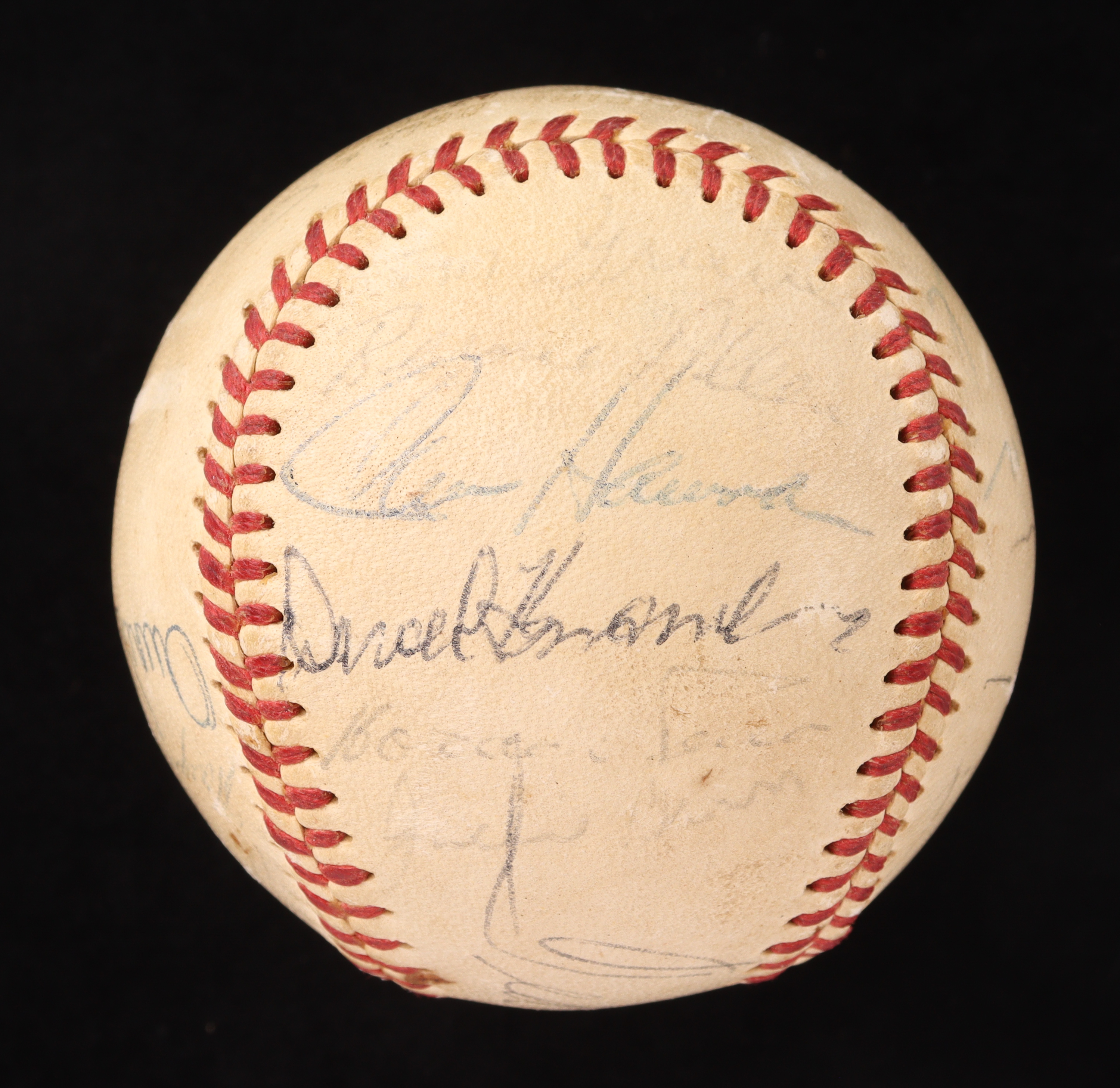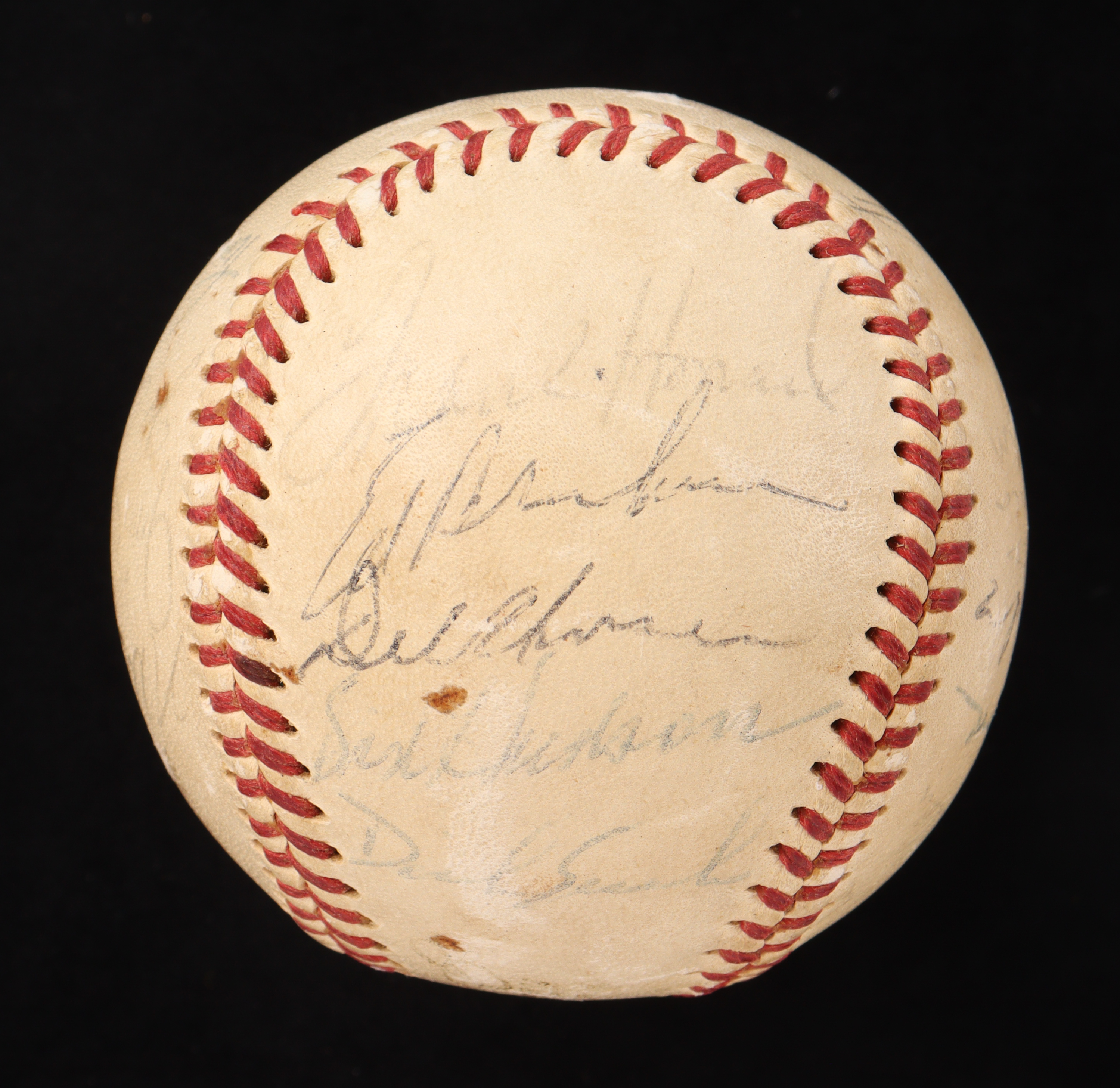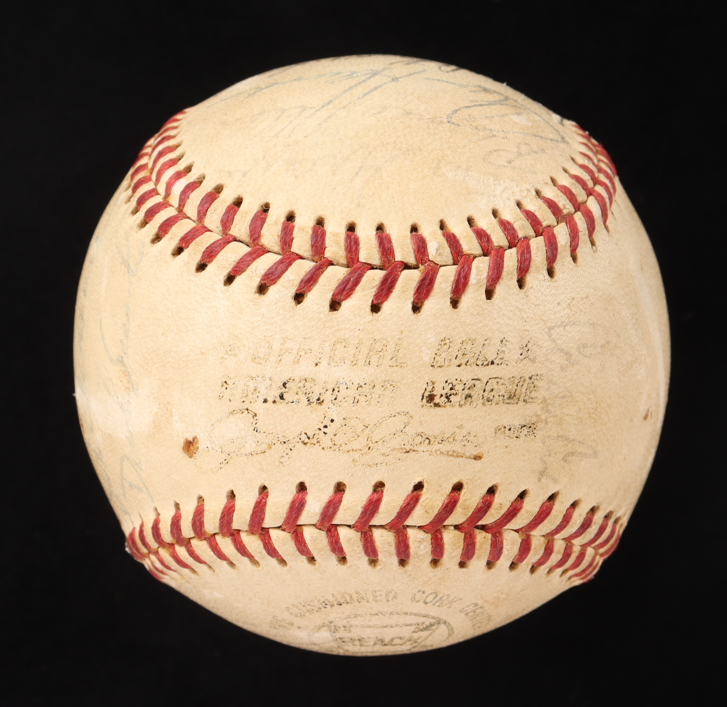 OAL Baseball with Display Case Signed by (20) with Ted Williams, Nellie Fox, Frank Howard, Tim Cullen with Multiple Inscriptions (PSA & JSA)