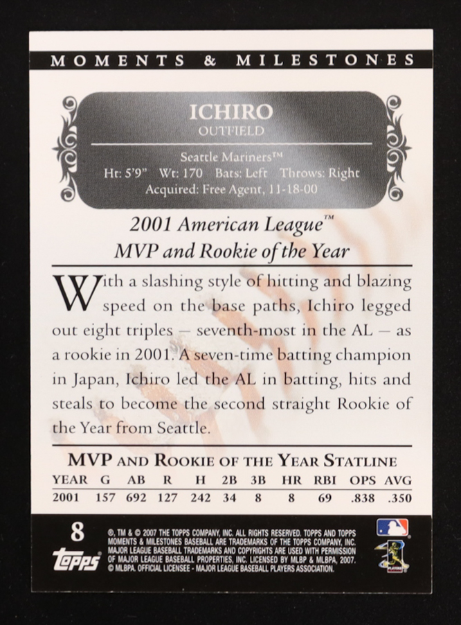 Ichiro Suzuki 2007 Topps Moments and Milestones Black #8 Triple 2 #4/29