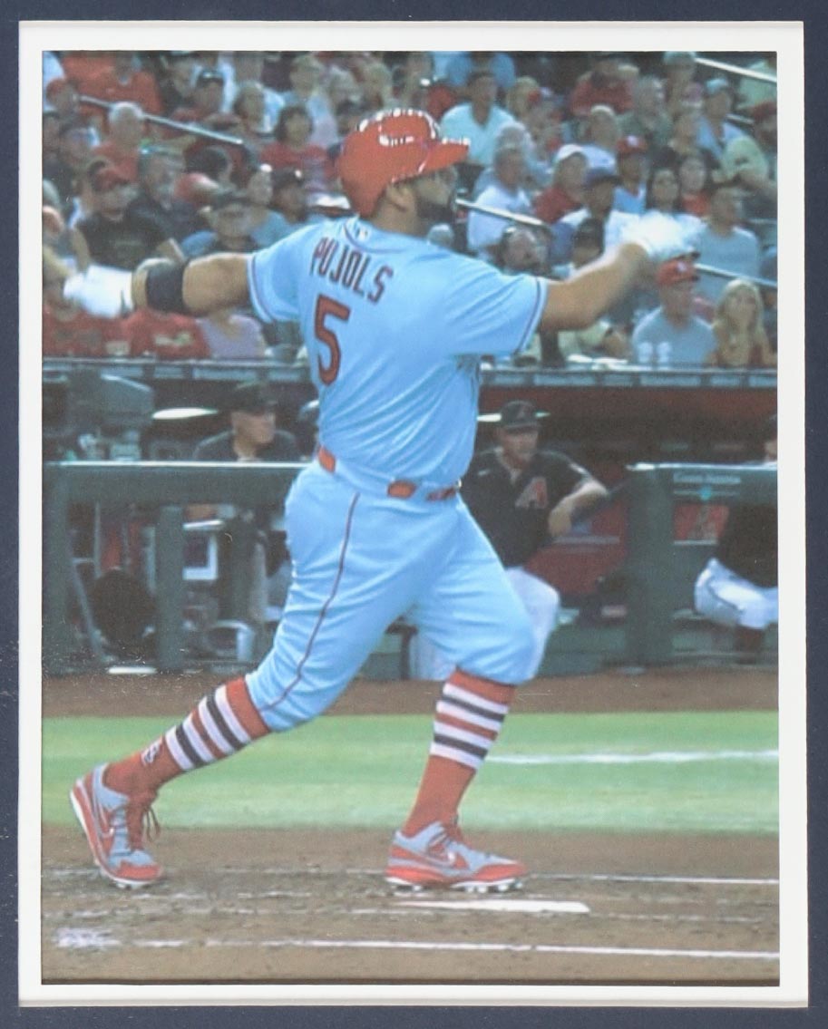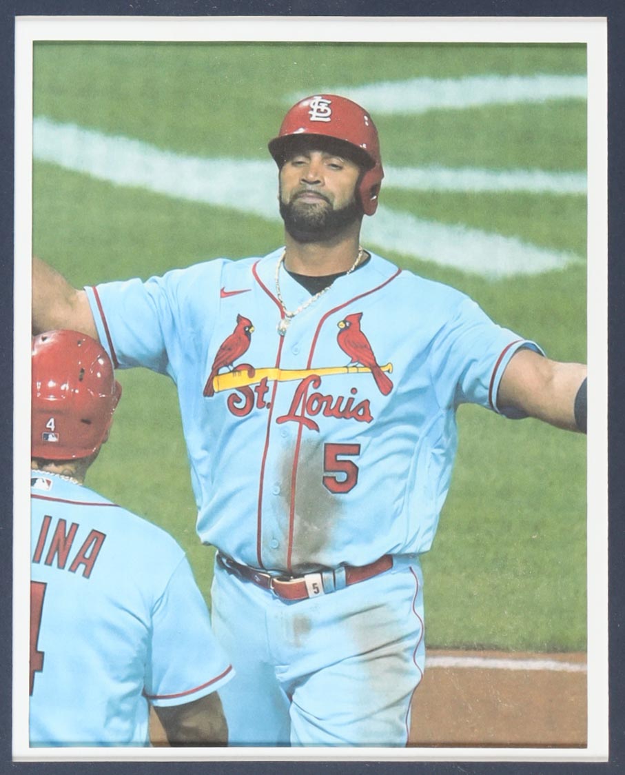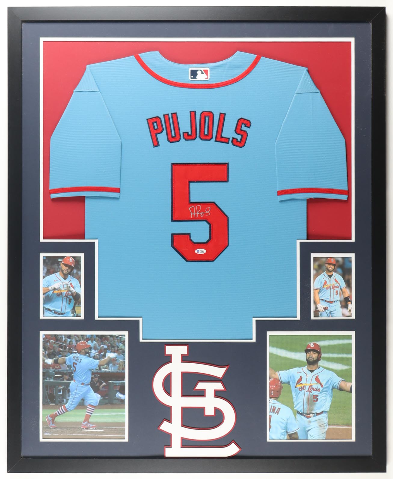 Custom frame measures 34" x 42" in size and features a custom jersey that has been hand-signed by Albert Pujols (St. Louis Cardinals). Please refer to photos regarding the condition of the item.