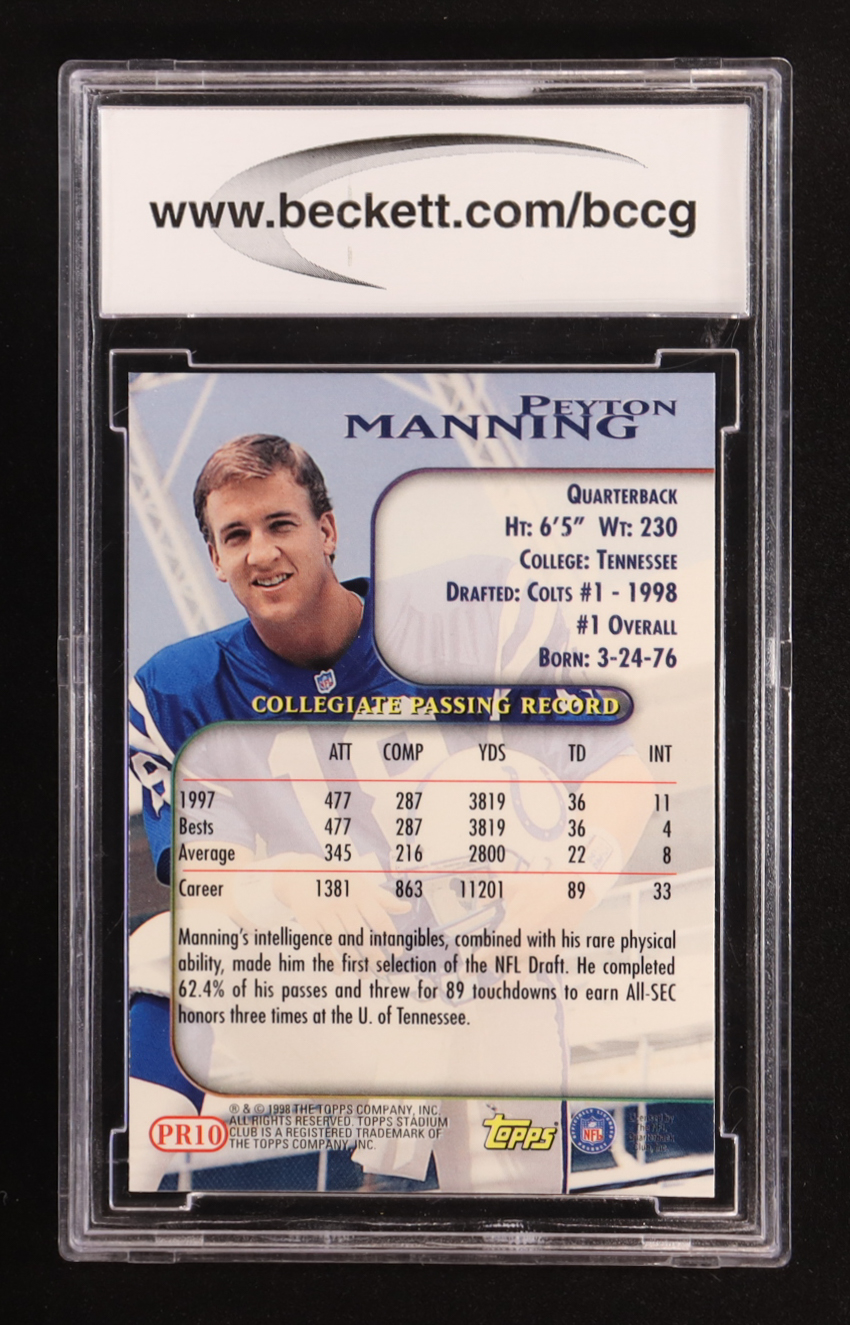 Peyton Manning 1998 Stadium Club Prime Rookies #PR10 RC (BCCG 10)