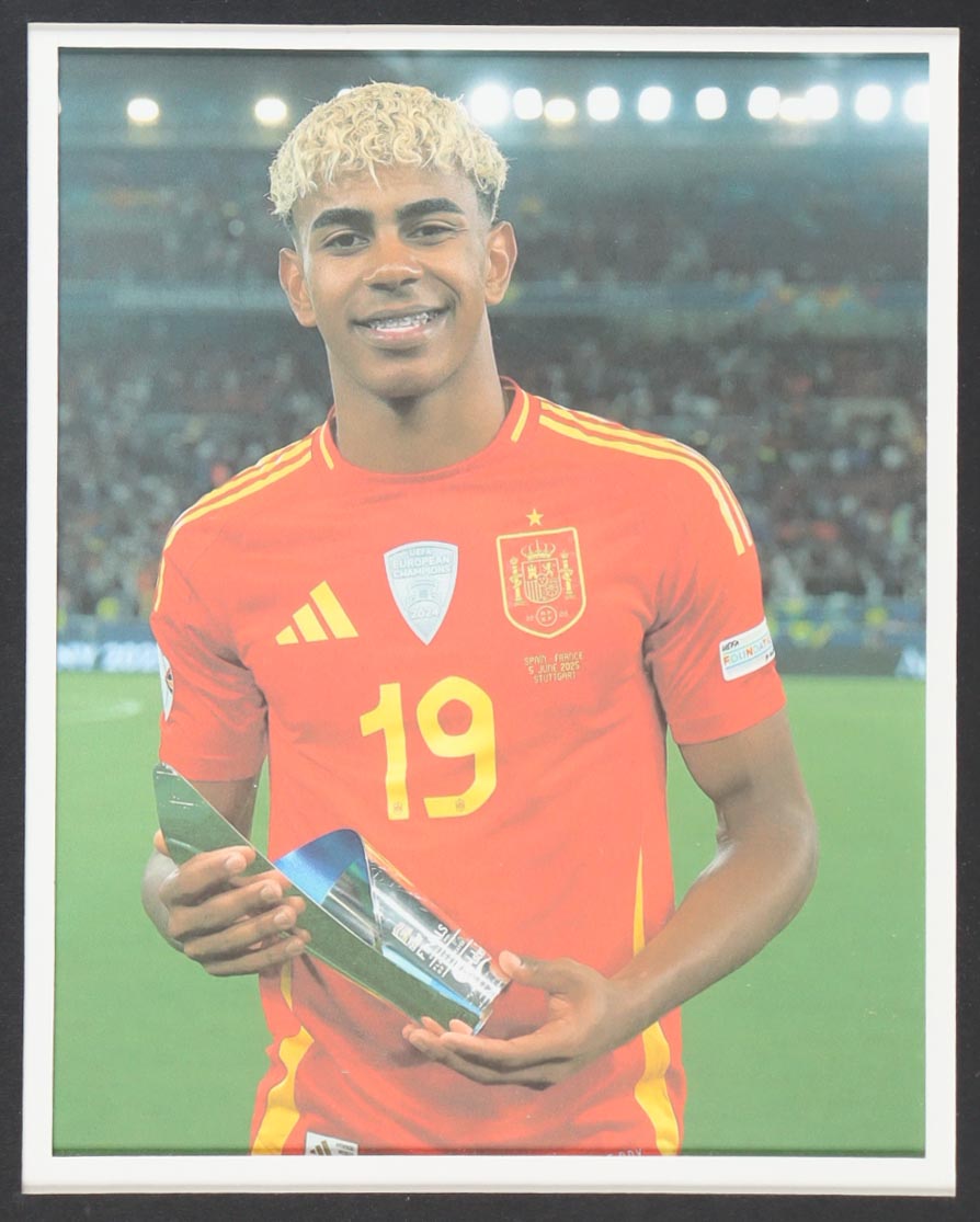 Custom frame measures 34" x 42" in size and features a custom jersey that has been hand-signed by Lamine Yamal (Spain National Football Team). Please refer to photos regarding the condition of the item.