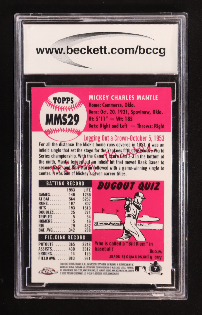Mickey Mantle 2007 Topps Chrome Mickey Mantle Story #MMS29 (BCCG 10)