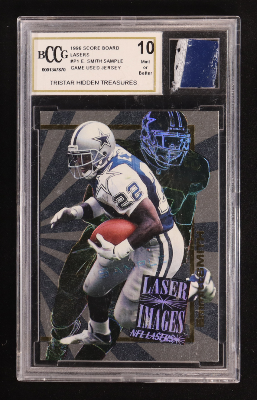 Emmitt Smith 1996 Score Board Lasers #P1 Promo With Game-Used Jersey (BCCG 10)