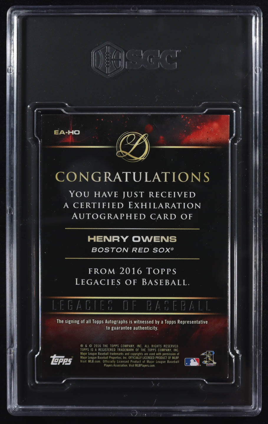 Henry Owens 2016 Topps Legacies of Baseball Exhilaration Autographs #EAHO #054/199 (SGC 9)