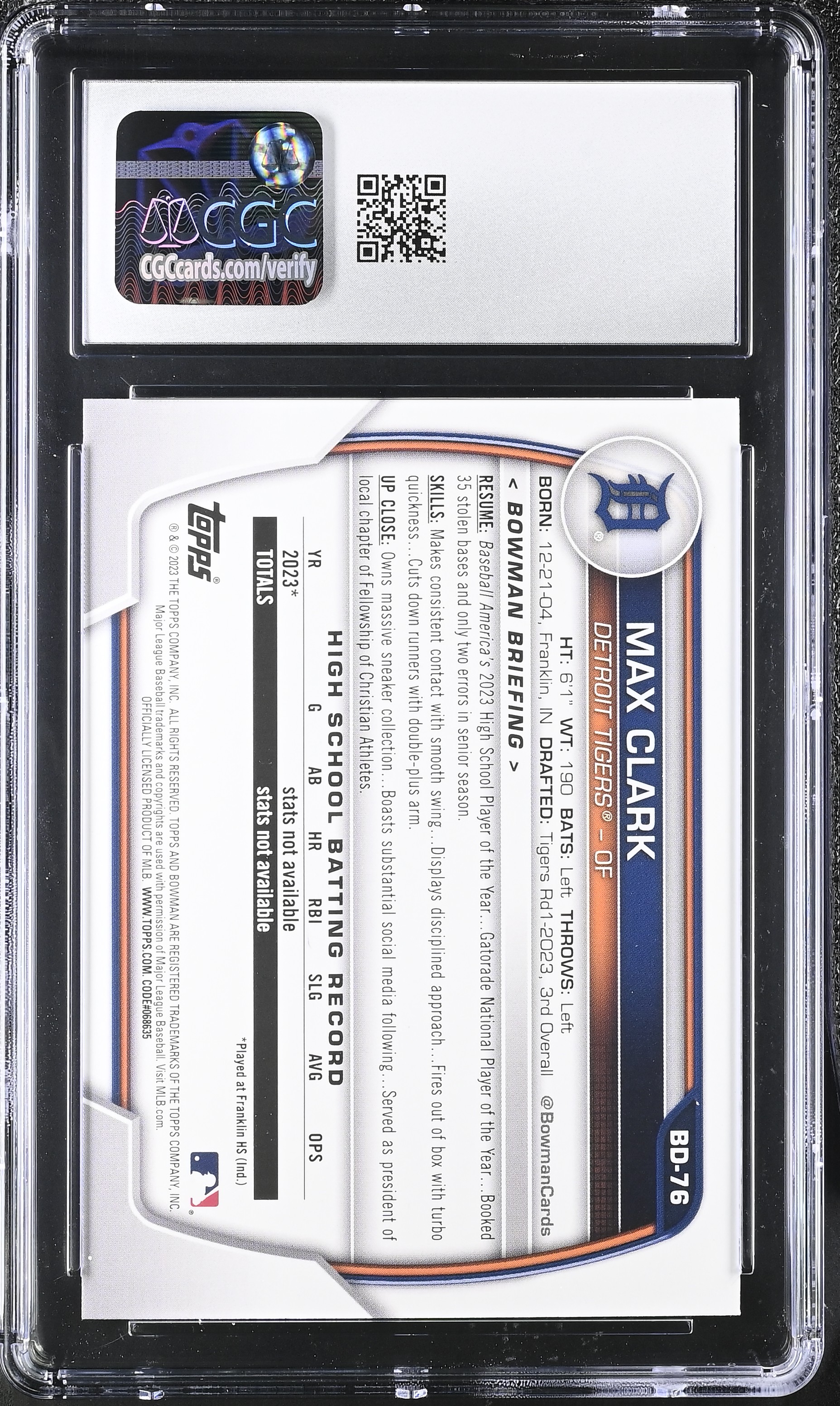 Max Clark 2023 Bowman Draft #BD-76 RC (CGC 10)
