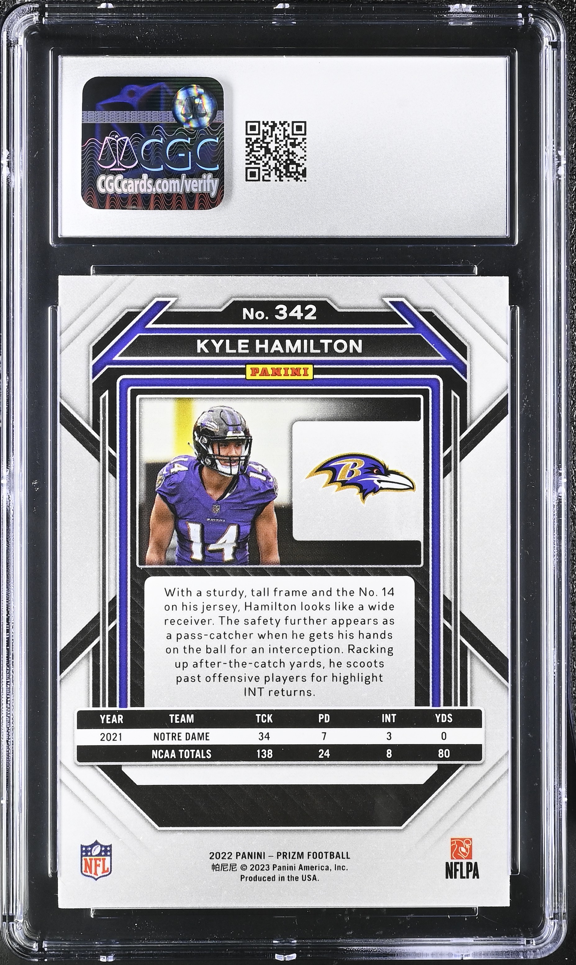Kyle Hamilton 2022 Panini Prizm #342 RC (CGC 9)
