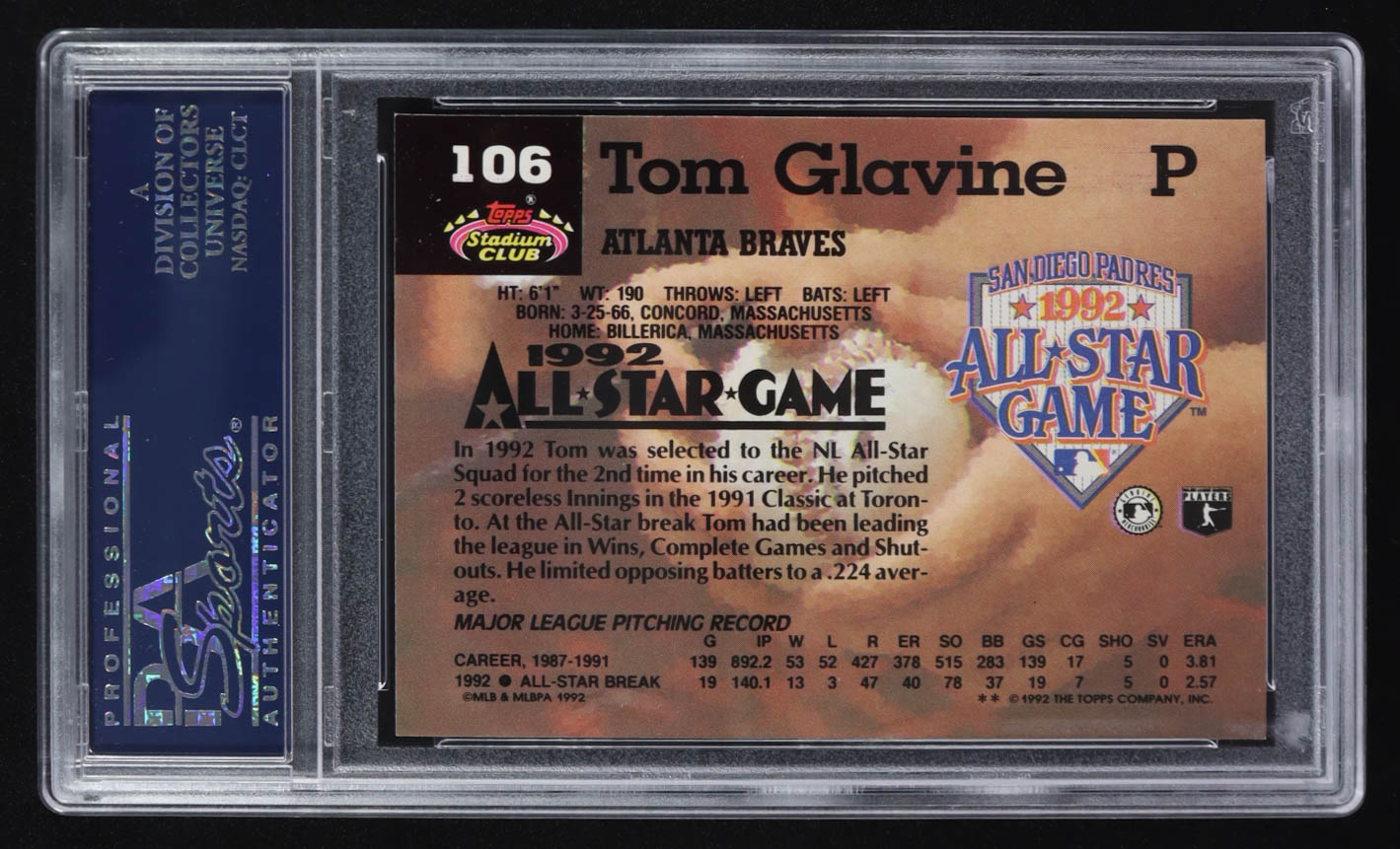 Tom Glavine 1993 Stadium Club Murphy #106 AS (PSA 10)