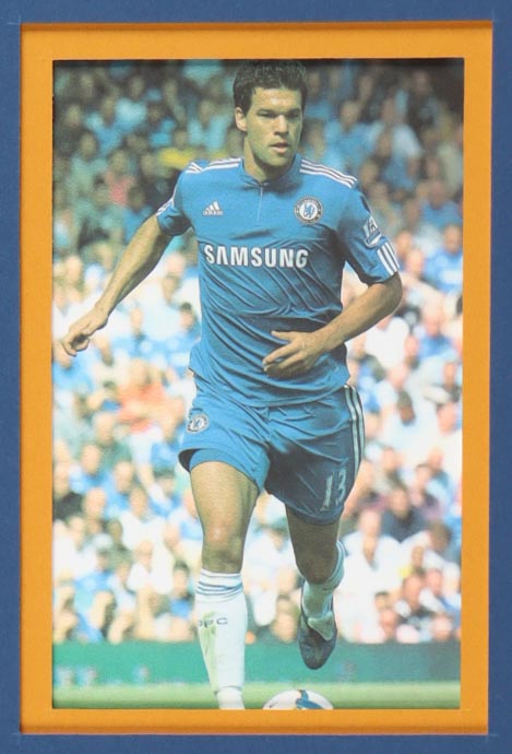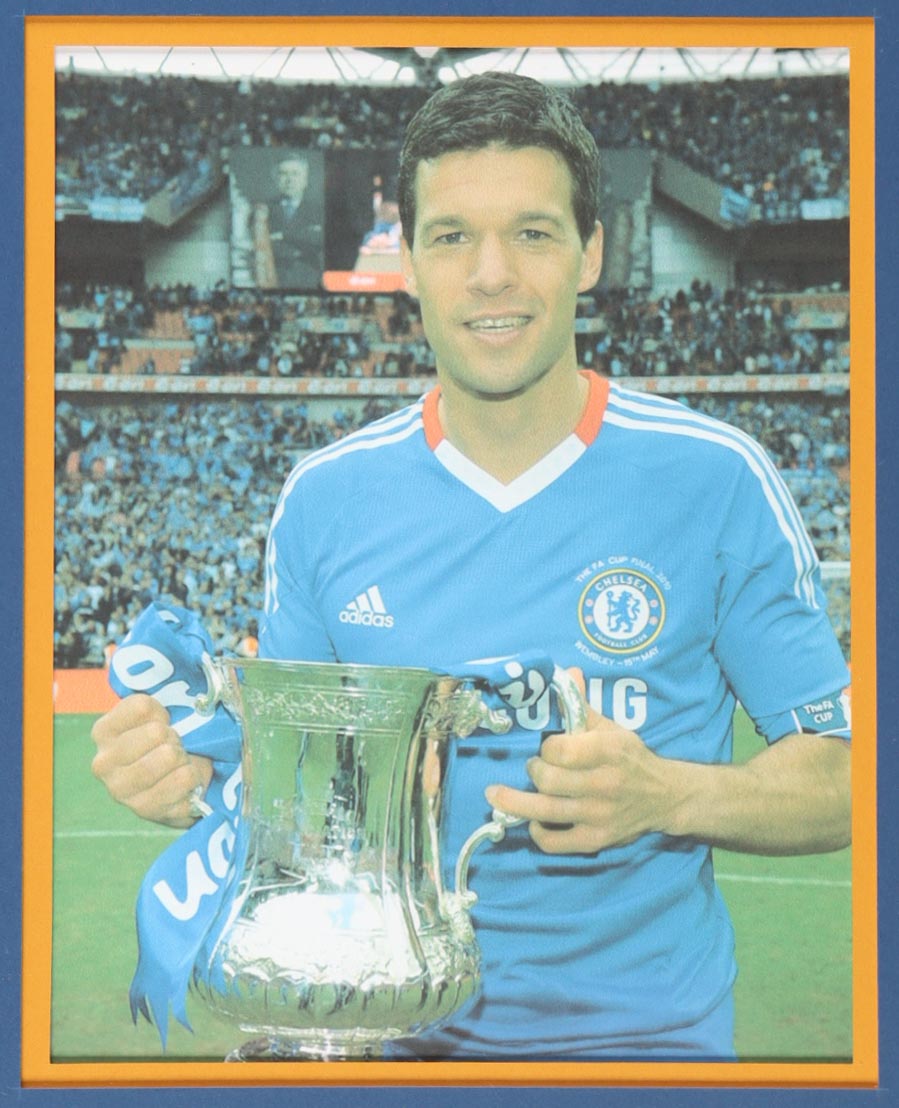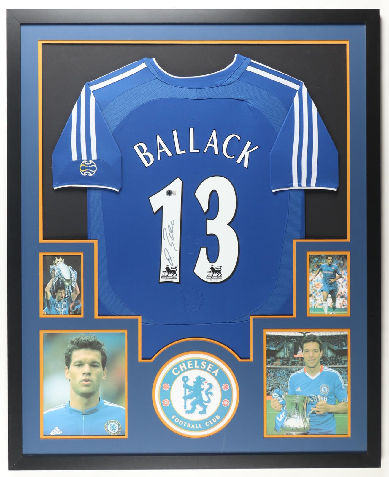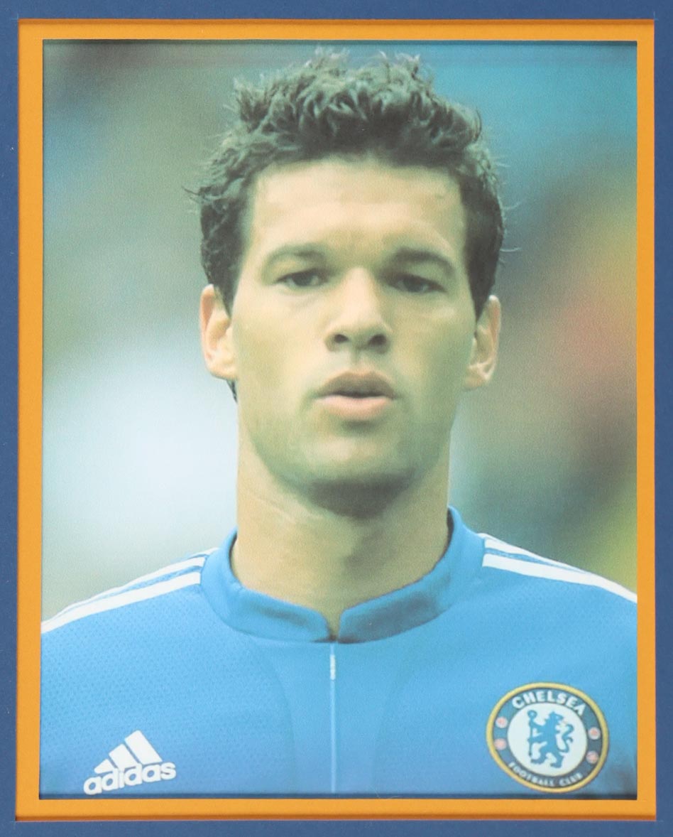 Custom frame measures 34" x 42" in size and features a custom jersey that has been hand-signed by Michael Ballack (Chelsea FC). Please refer to photos regarding the condition of the item.