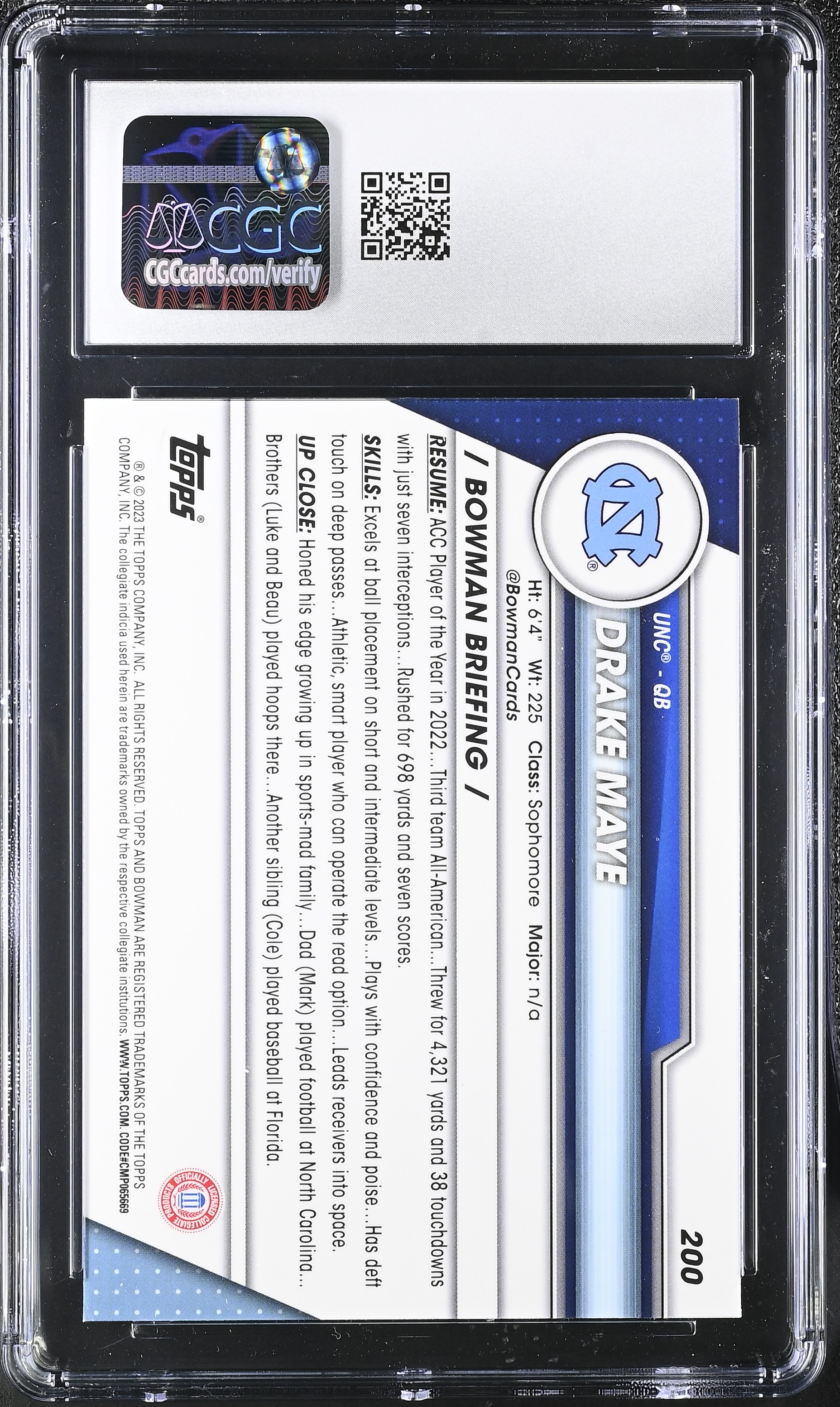 Drake Maye 2023 Bowman Chrome University #200 RC (CGC 9)