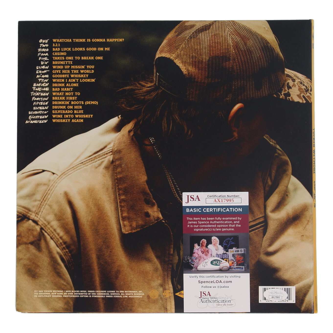 Vinyl record album has been hand-signed on the slipcover by Tucker Wetmore. Please note, vinyl record is included as shown.