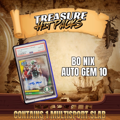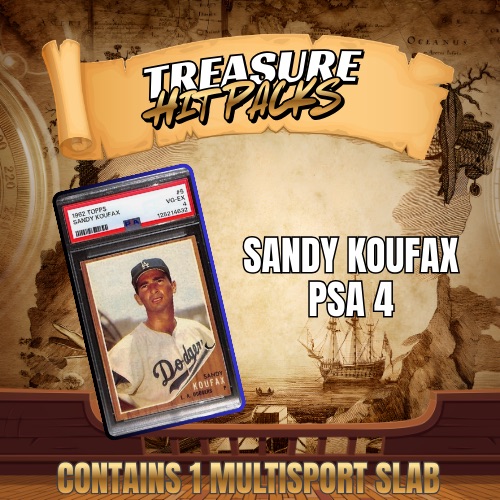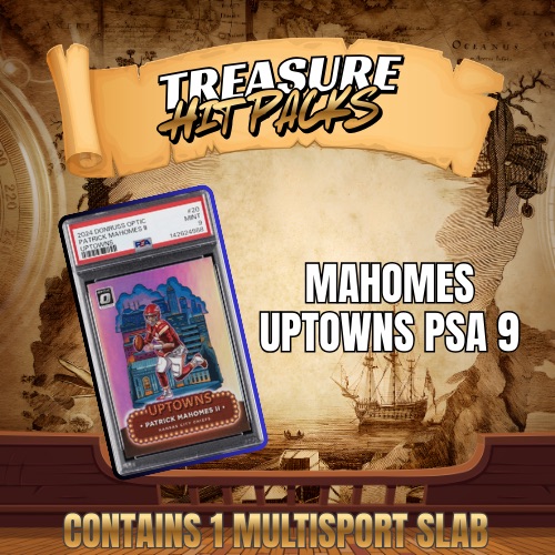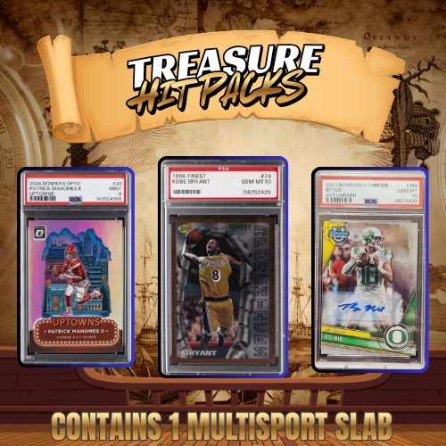 Each Treasure Hit Pack contains one (1) randomly inserted graded or authenticated sports card, featuring baseball, basketball, football, soccer or hockey. All cards are graded and/or authenticated exclusively by PSA, Beckett, SGC,