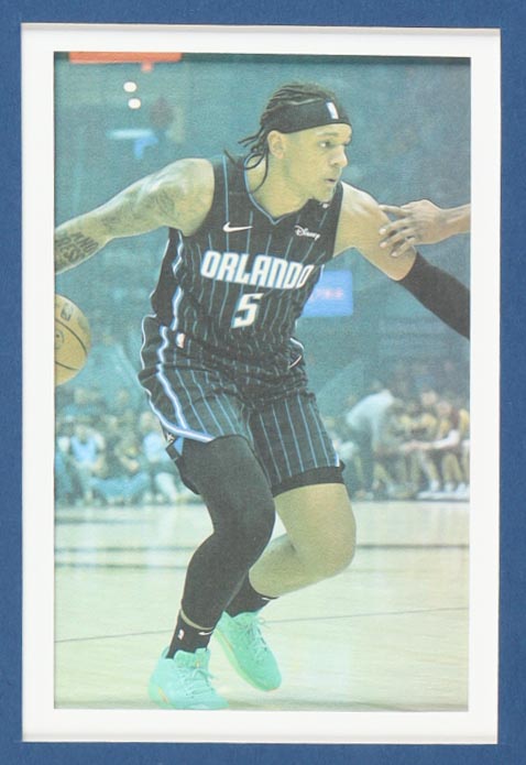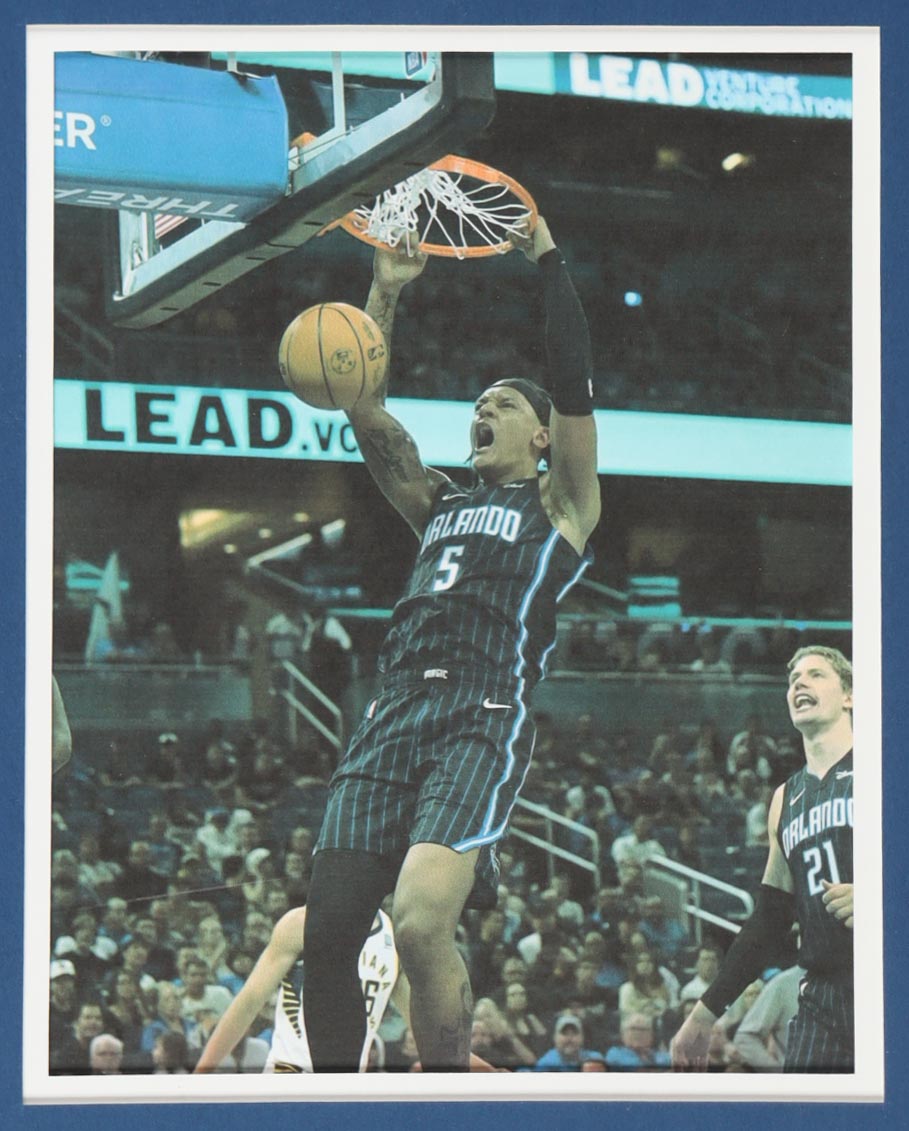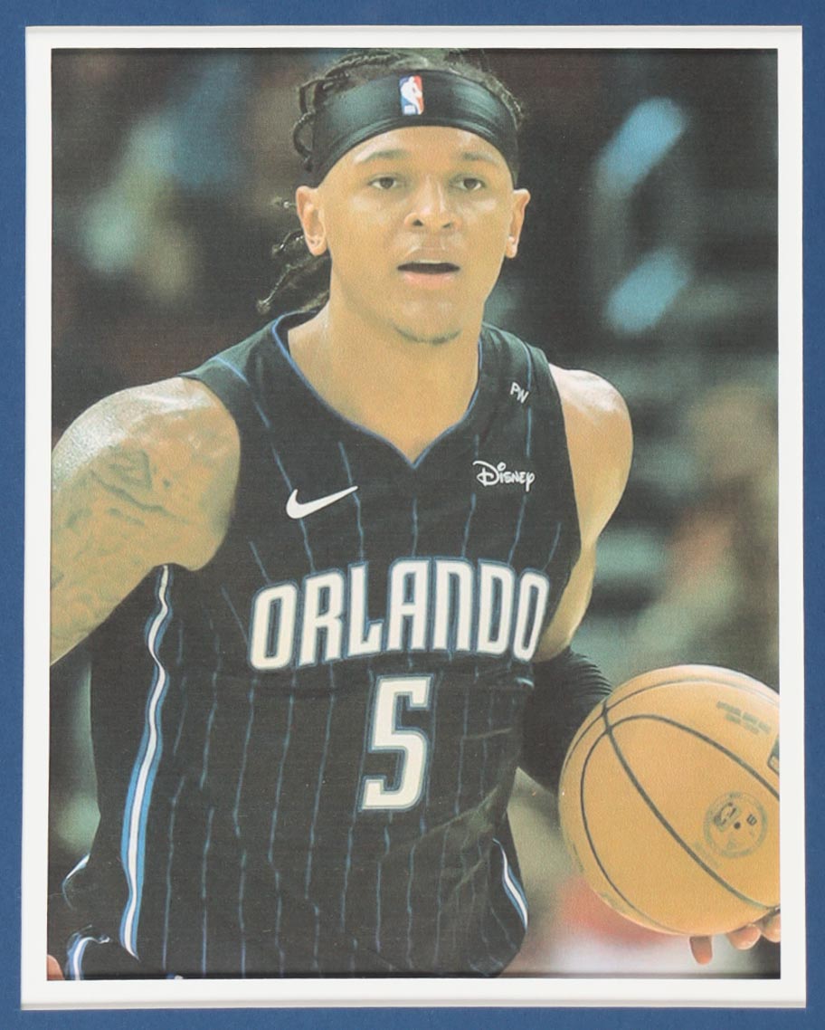 Custom frame measures 34" x 42" in size and features a custom jersey that has been hand-signed by Paolo Banchero (Orlando Magic). Please refer to photos regarding the condition of the item.