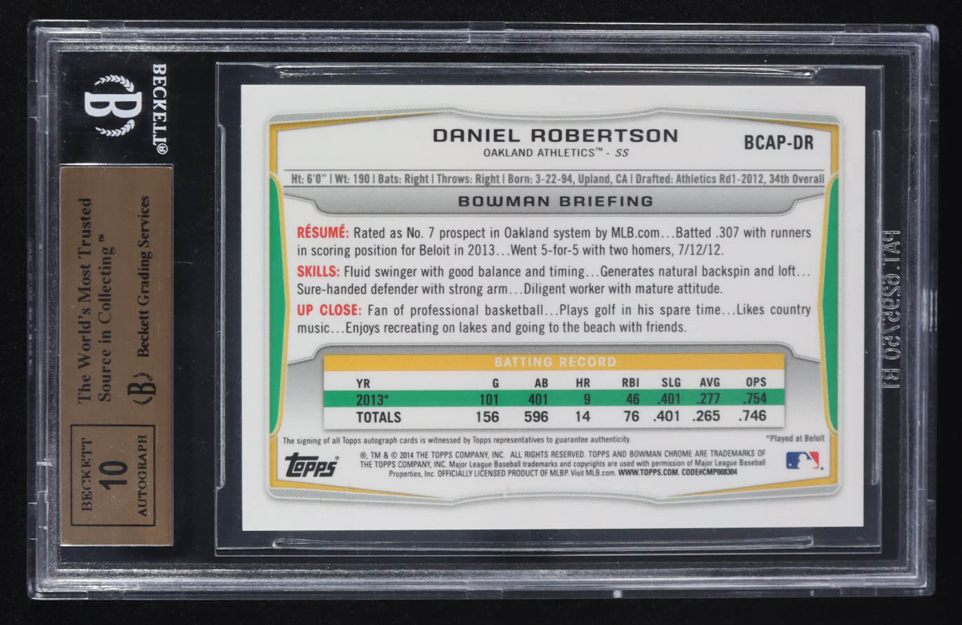 Daniel Robertson 2014 Bowman Chrome Prospect Autographs #BCAPDR (BGS 9.5 | Autograph Graded BGS 10)