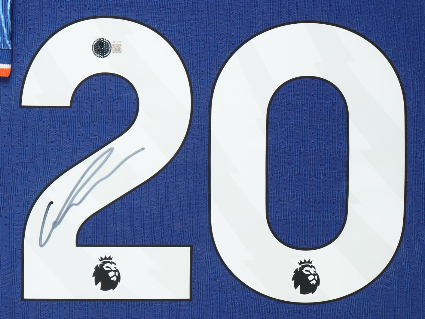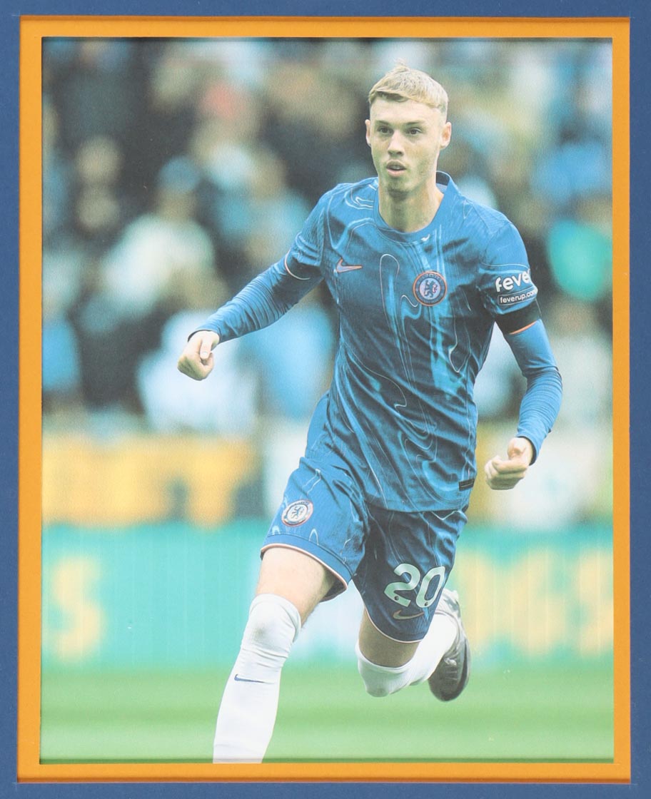 Custom frame measures 34" x 42" in size and features a custom jersey that has been hand-signed by Cole Palmer (Chelsea F.C.). Please refer to photos regarding the condition of the item.