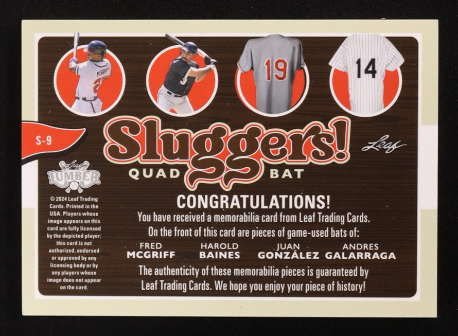 Fred McGriff / Harold Baines / Juan Gonzalez / Andres Galarraga 2024 Leaf Lumber Sluggers Quad Bat #S9 #06/35
