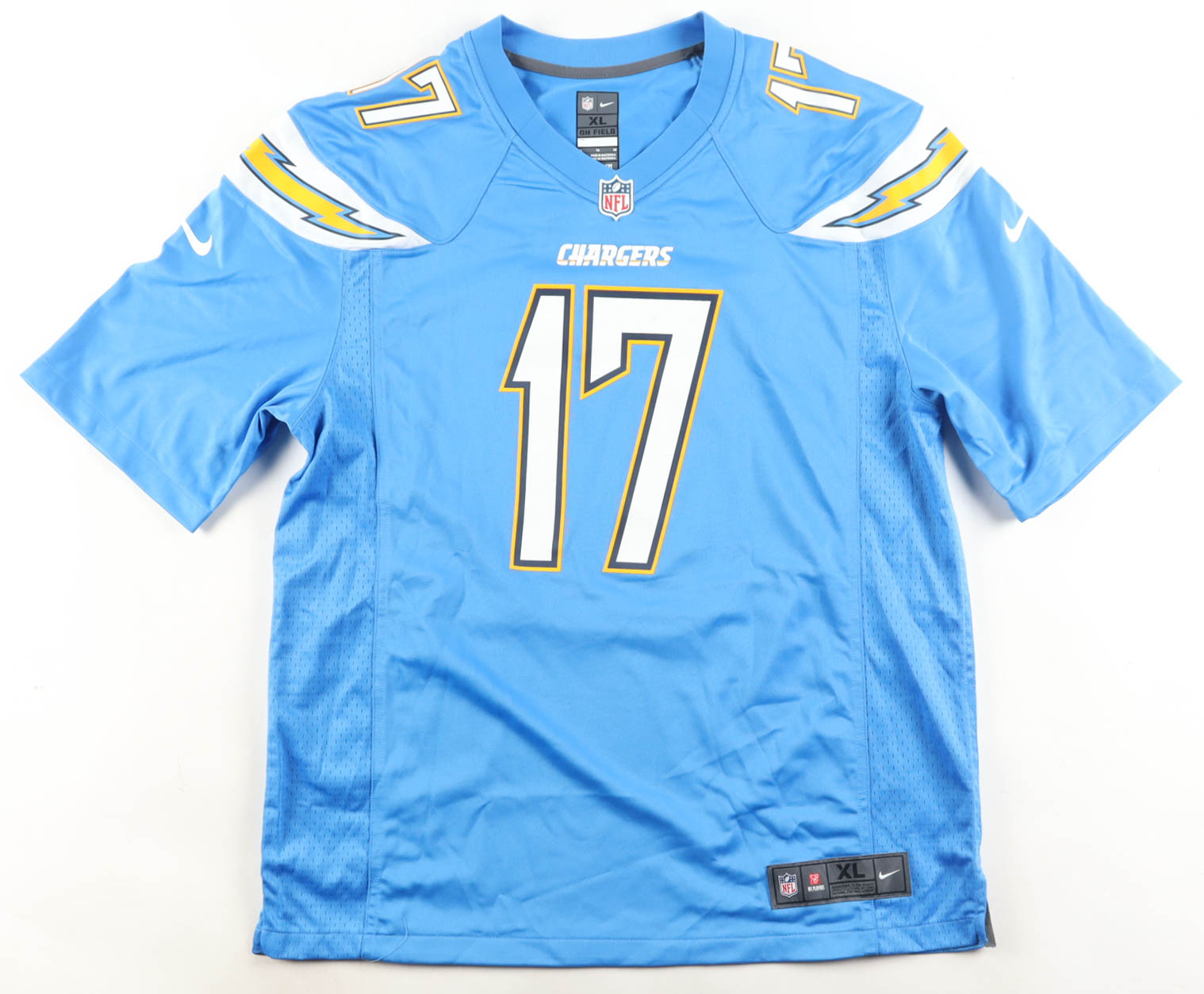 Nike jersey with everything pressed on, size XL. Hand-signed by Philip Rivers (Los Angeles Chargers). Please note, there is minor residue around the hologram.
