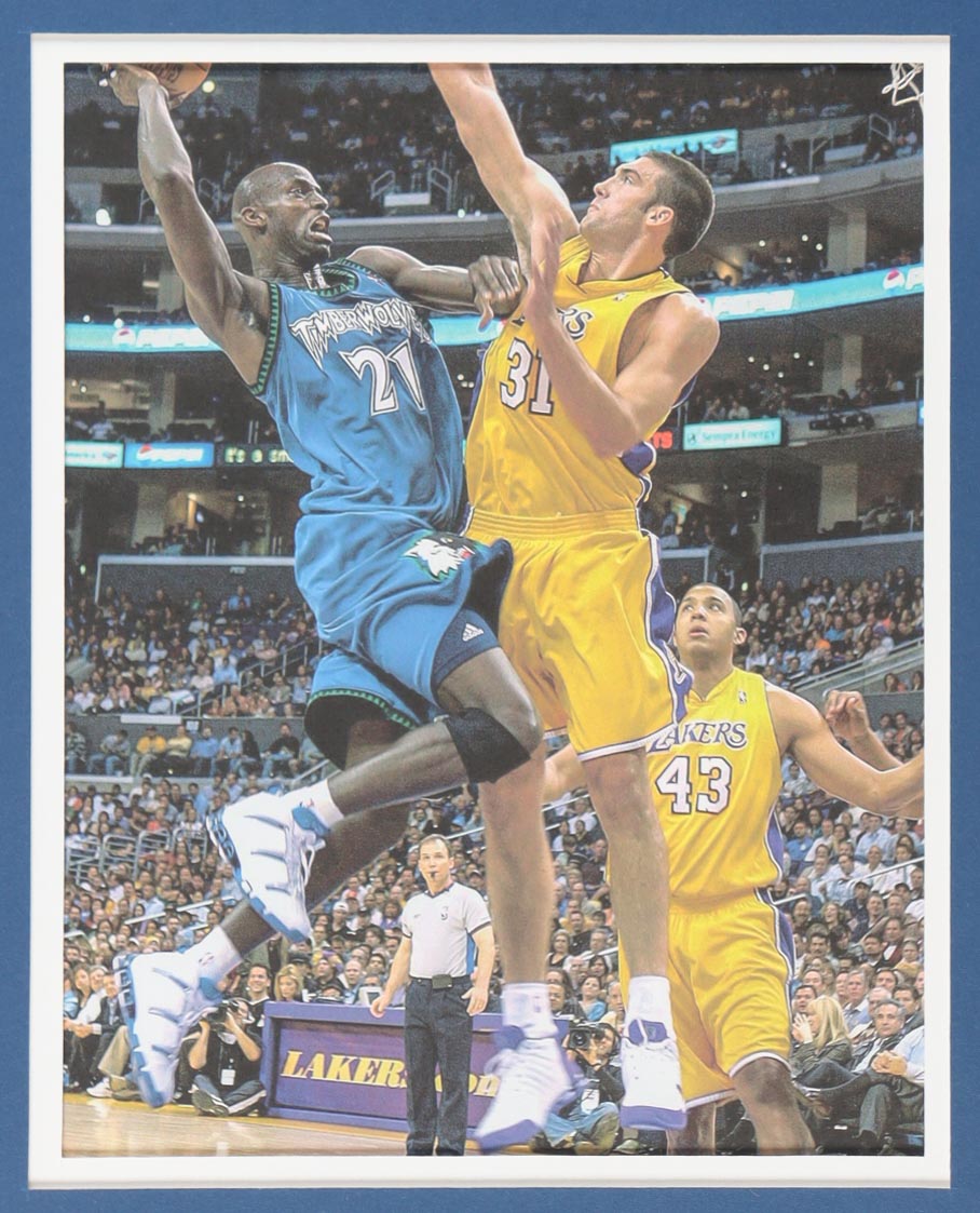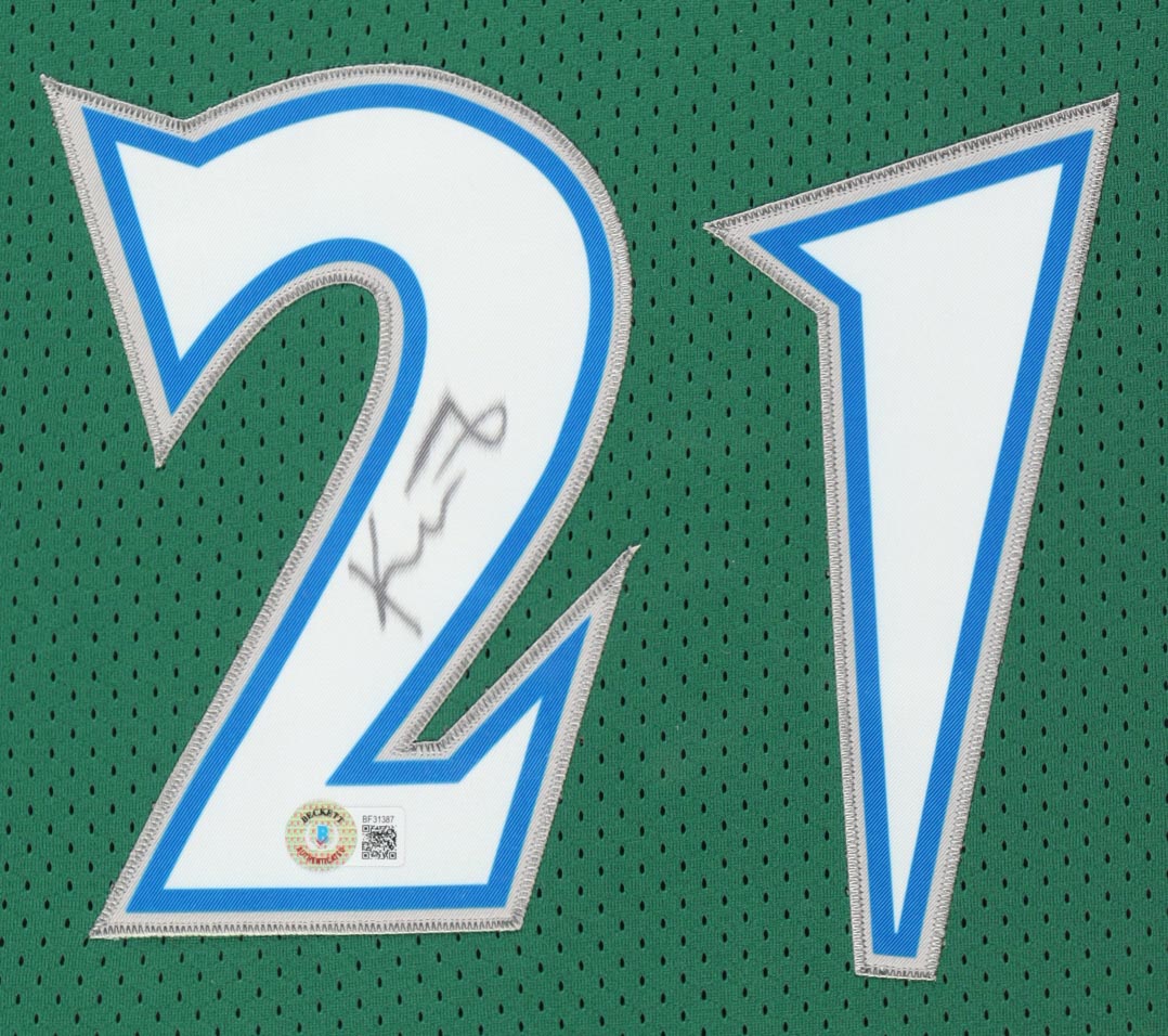 Custom frame measures 34" x 42" in size and features a jersey that has been hand-signed by Kevin Garnett (Minnesota Timberwolves, HOF). Please refer to photos regarding the condition of the item.