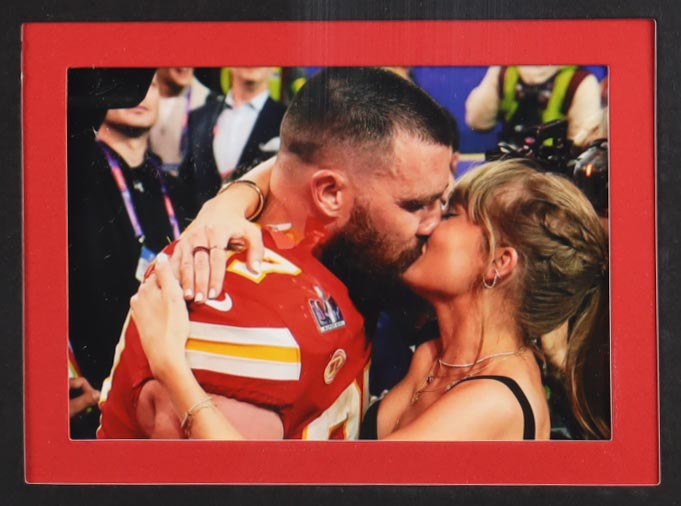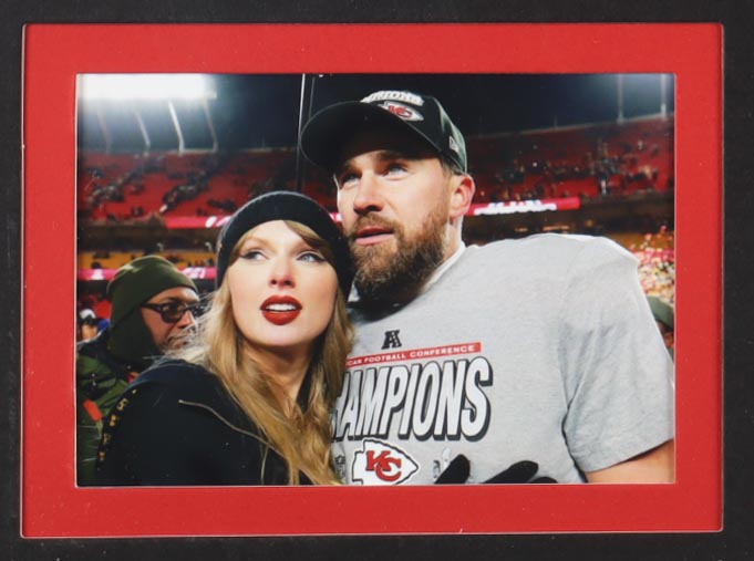 Custom frame measures 24" x 31.5" in size. CD album is hand-signed by Taylor Swift. Display also includes (2) unsigned photographs and an unsigned custom jersey.