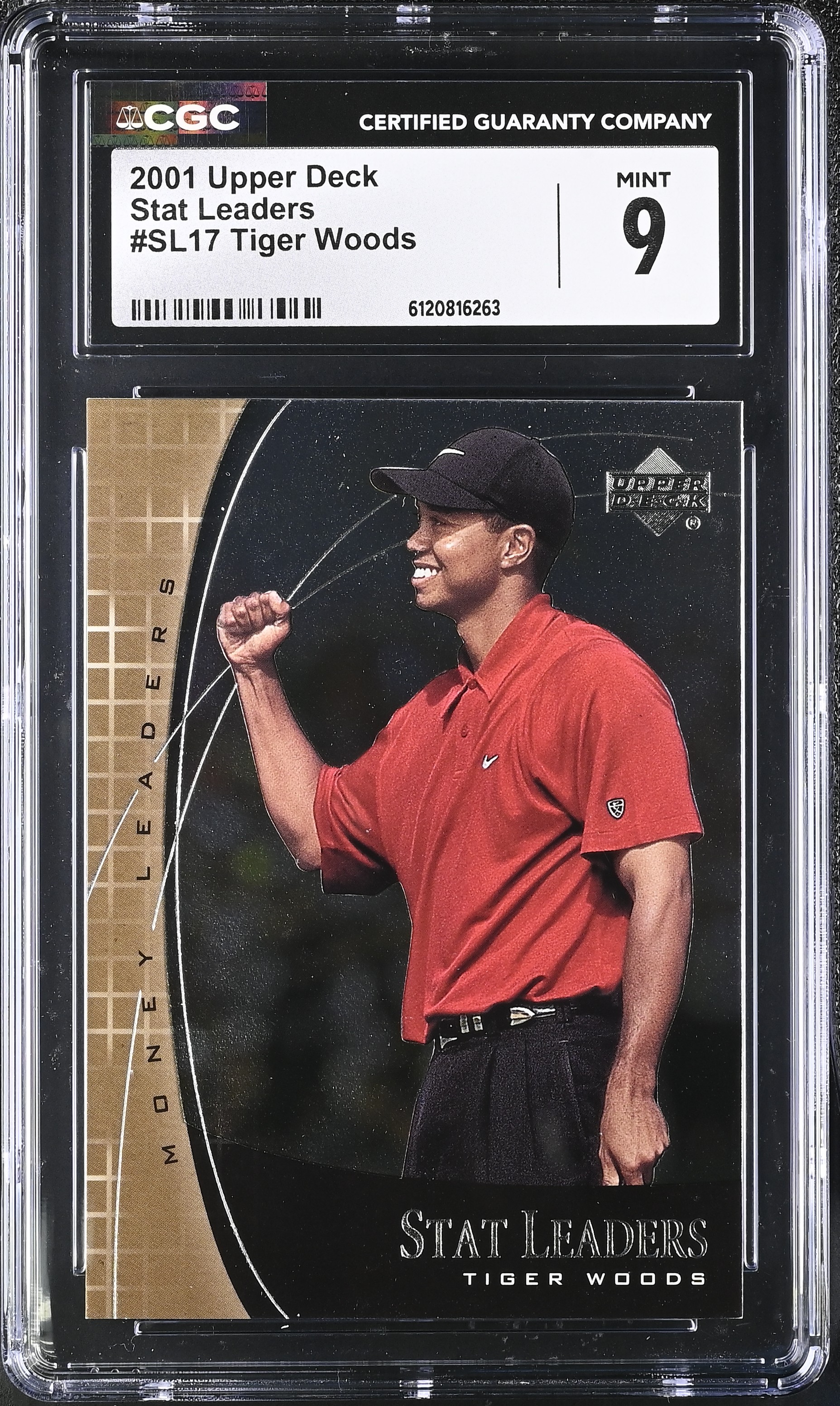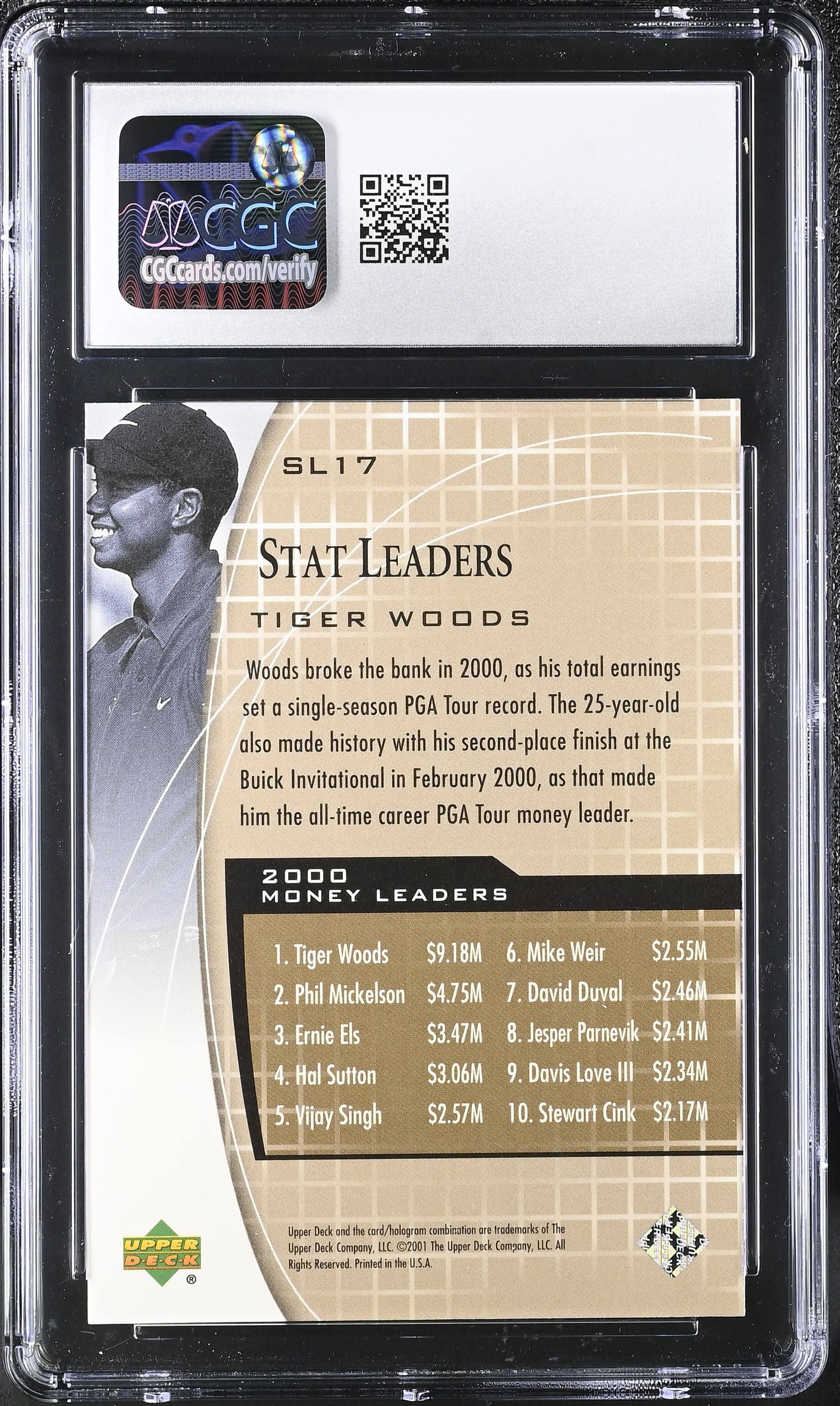 Tiger Woods 2001 Upper Deck Stat Leaders #SL17 RC (CGC 9)