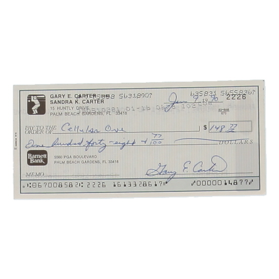 Gary E. Carter Signed 1990 Barnett Bank Personal Check (JSA)