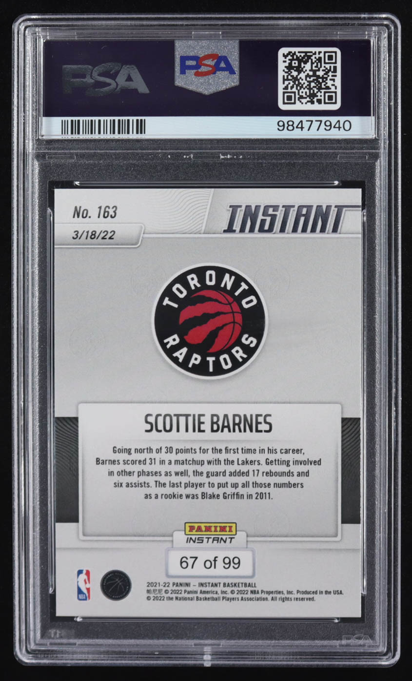 Scottie Barnes 2021-22 Panini Instant Red #163 #67/99 RC (PSA 10)