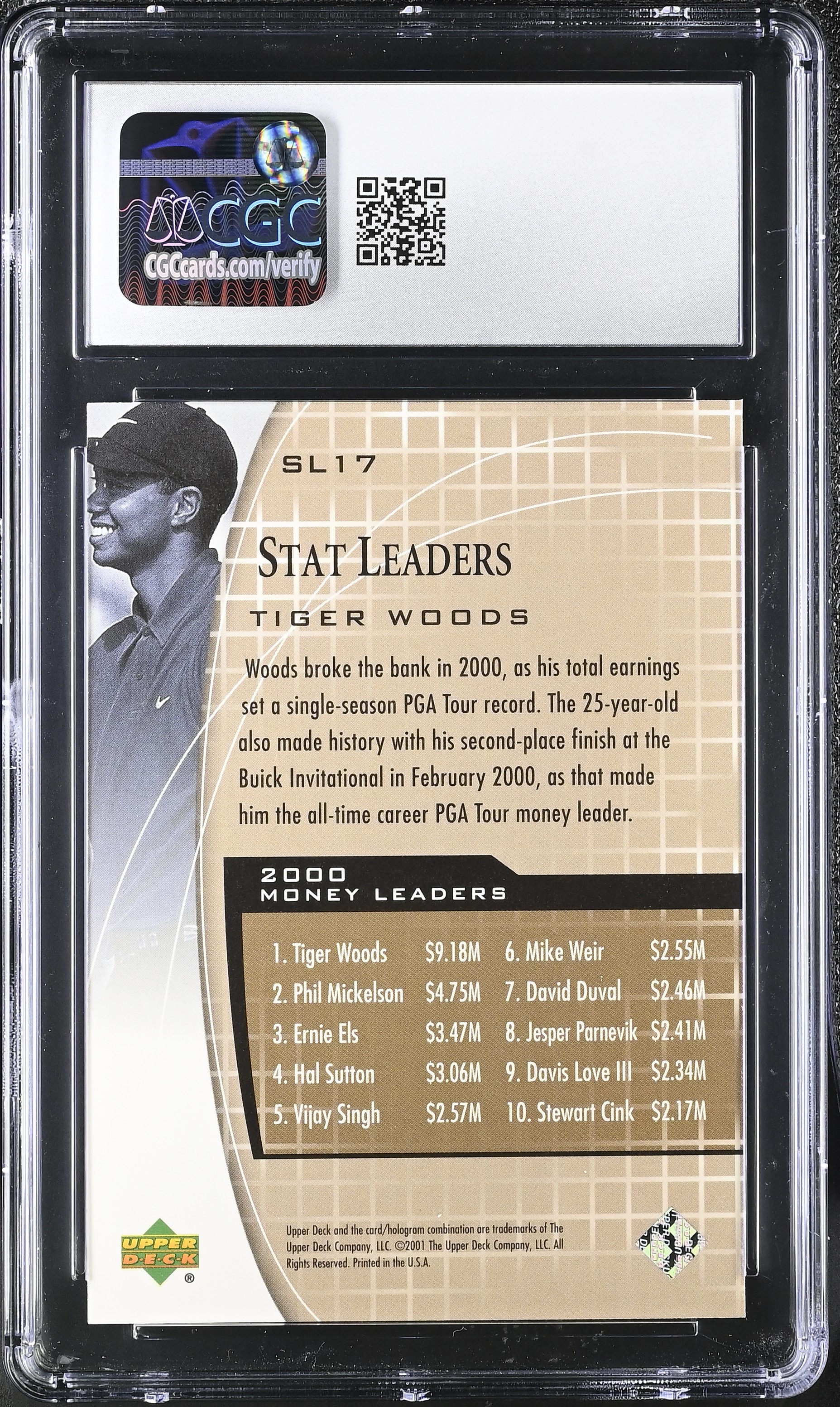 Tiger Woods 2001 Upper Deck Stat Leaders #SL17 RC (CGC 9.5)