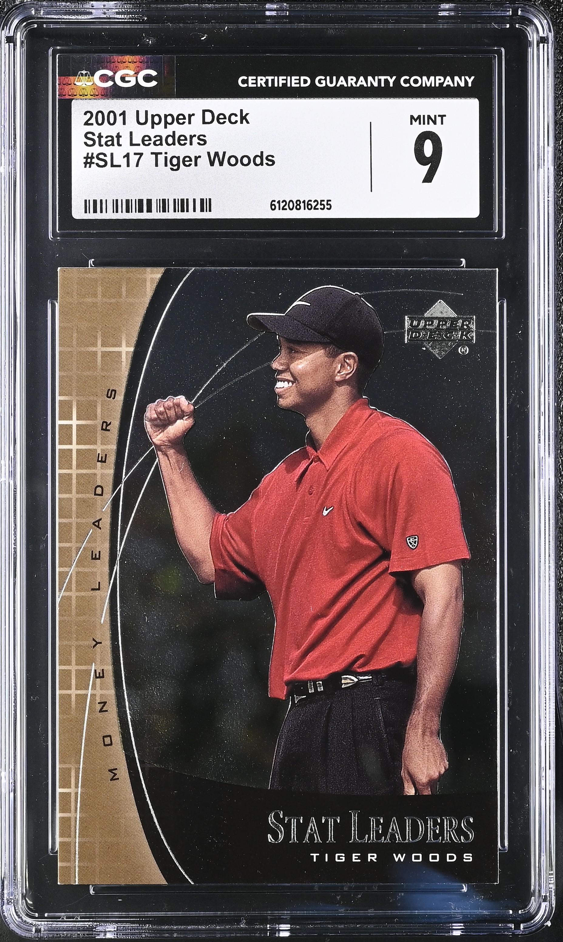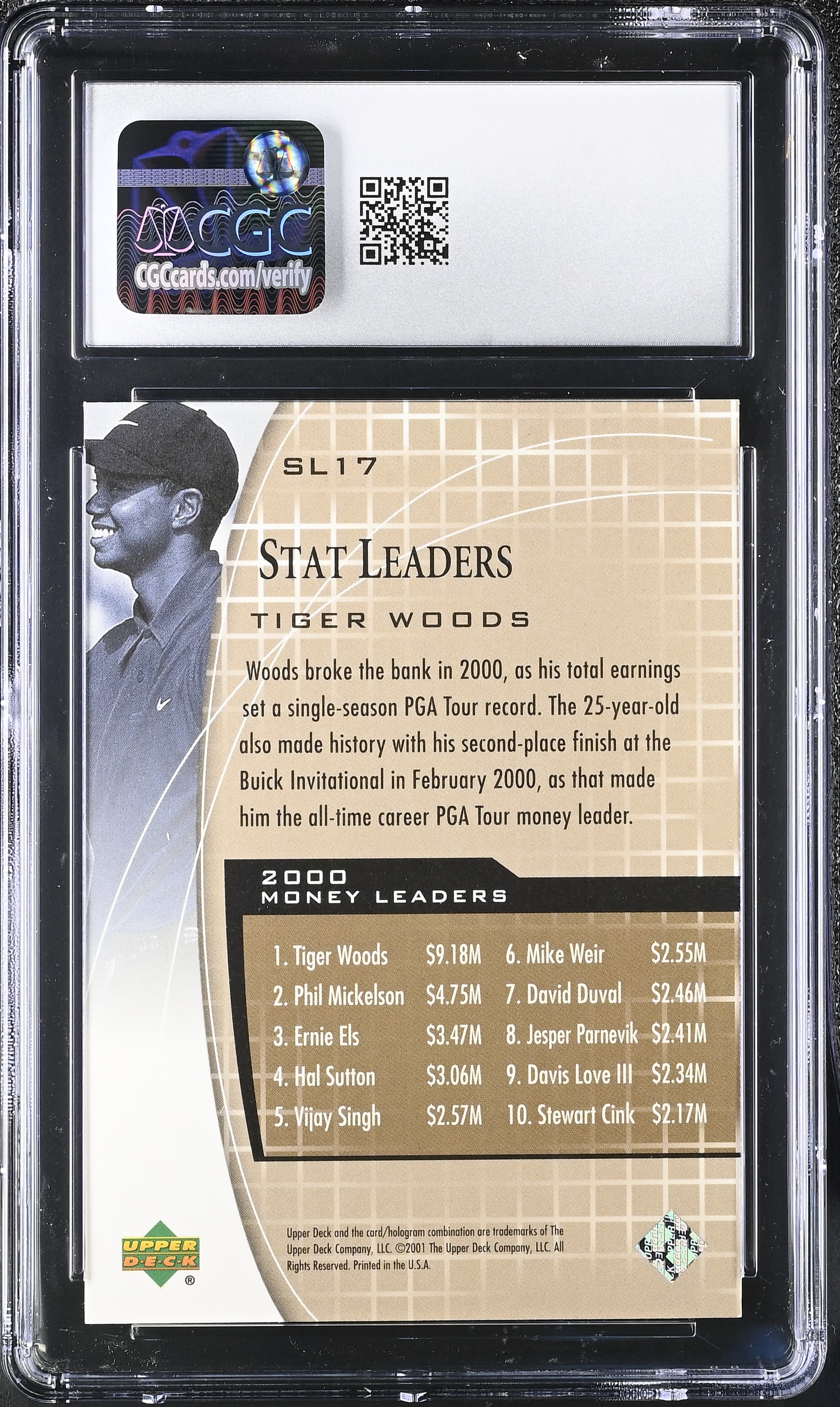 Tiger Woods 2001 Upper Deck Stat Leaders #SL17 RC (CGC 9)