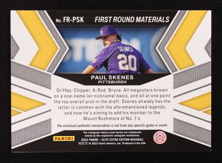 Paul Skenes 2023 Elite Extra Edition First Round Materials #8 RC