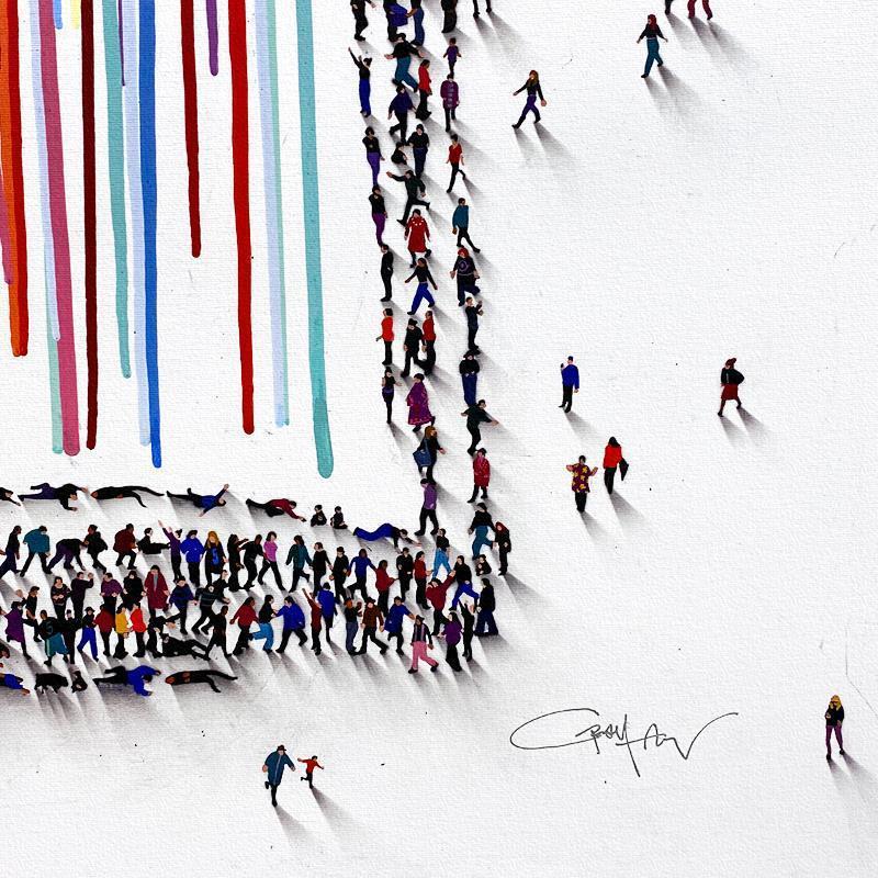 "Populus: Everyone" is a numbered limited edition giclee on canvas by Craig Alan, hand signed by the artist. This piece comes custom framed and includes Letter of Authenticity. Measures approximately 37.5" x 37.5" (frame), 36" x 36" (image). This item requires special handling and may have a longer than usual turnaround.