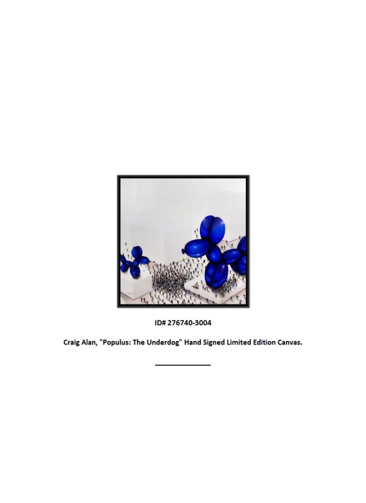 "Populus: The Underdog" is a numbered limited edition giclee on canvas by Craig Alan, hand signed by the artist. This piece comes custom framed and includes Letter of Authenticity. Measures approximately 37.5" x 37.5" (frame), 36" x 36" (image). This item requires special handling and may have a longer than usual turnaround.