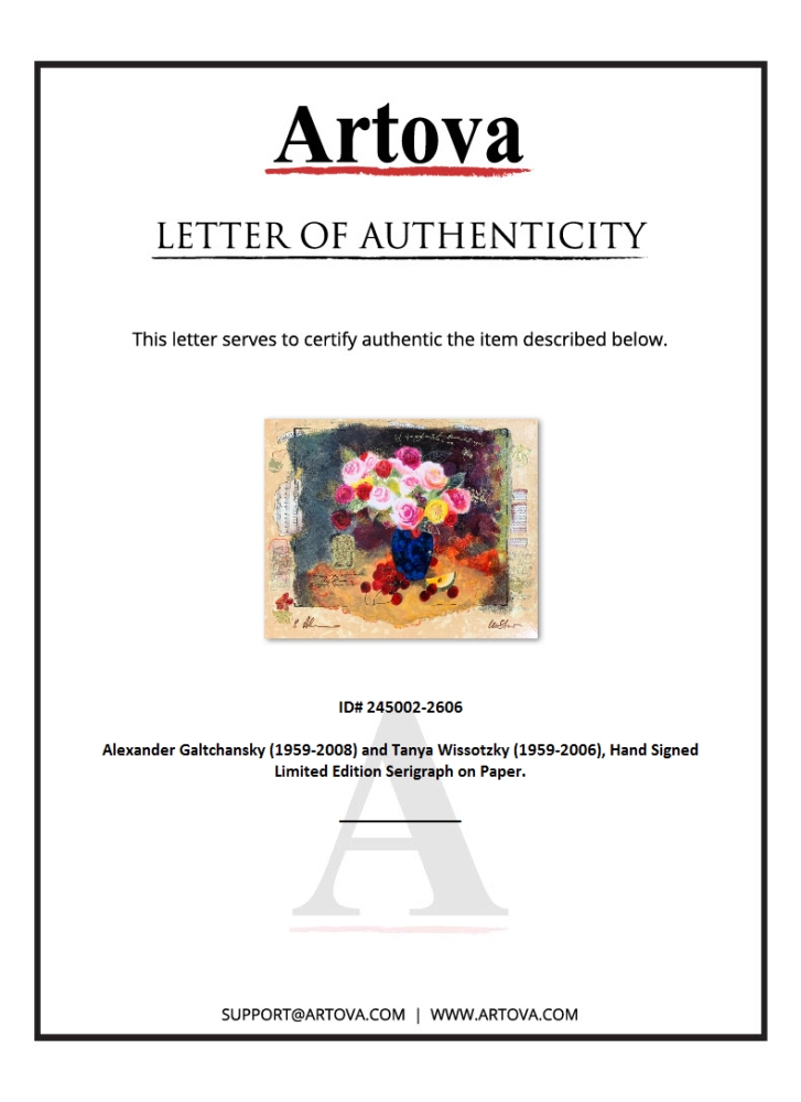 This is a limited edition serigraph on deckle edged paper by Alexander Galtchansky (1959-2008) and Tanya Wissotzky (1959-2006). It is numbered and hand signed and includes a letter of authenticity. Measures approximately 16.5" x 20.5" (image).
