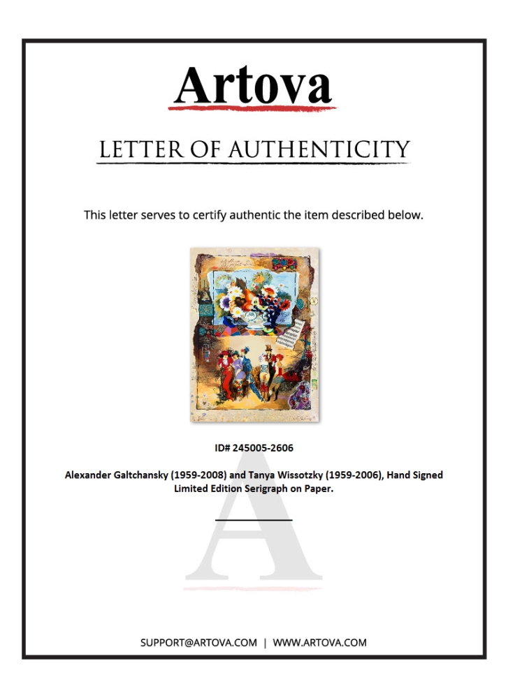 This is a limited edition serigraph on deckle edged paper by Alexander Galtchansky (1959-2008) and Tanya Wissotzky (1959-2006). It is numbered and hand signed and includes a letter of authenticity. Measures approximately 22" x 16" (image).