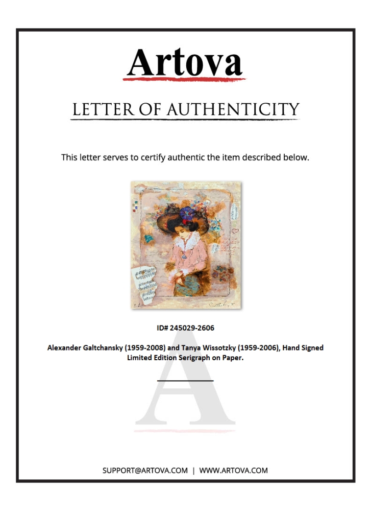 "Emmanuel" is a limited edition serigraph on deckle edged paper by Alexander Galtchansky (1959-2008) and Tanya Wissotzky (1959-2006). It is numbered and hand signed and includes a letter of authenticity. Measures approximately 19.5" x 16" (image).
