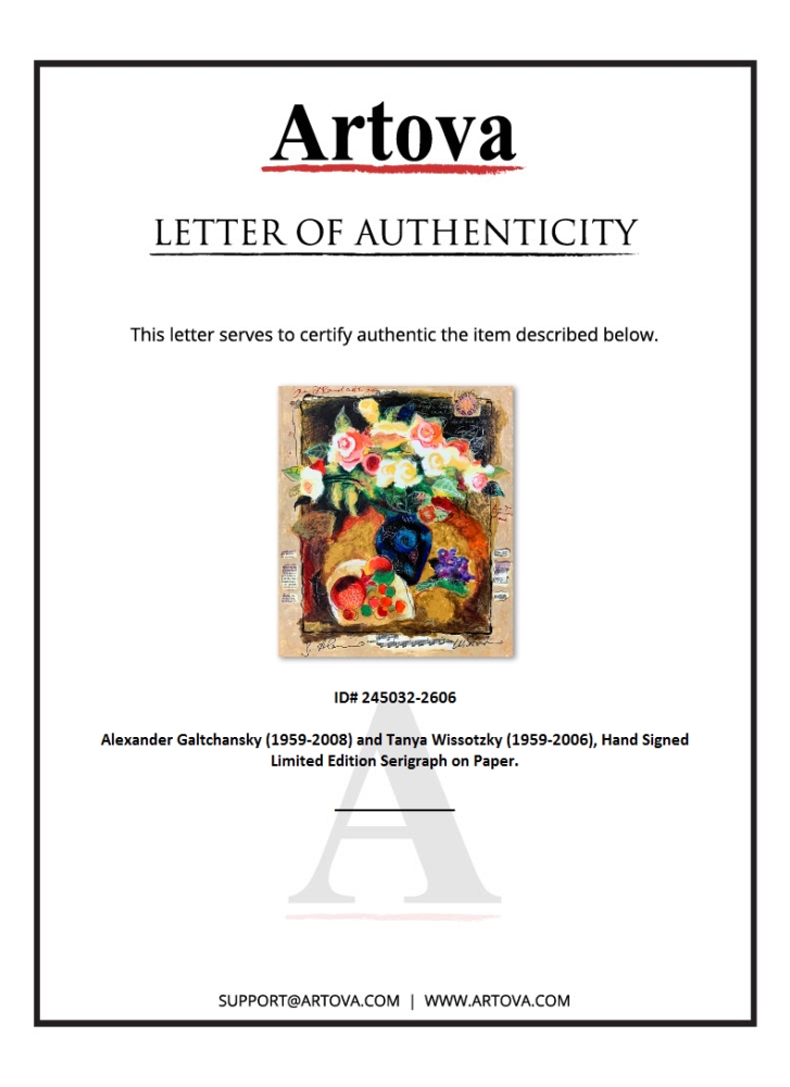 This is a limited edition serigraph on deckle edged paper by Alexander Galtchansky (1959-2008) and Tanya Wissotzky (1959-2006). It is numbered and hand signed and includes a letter of authenticity. Measures approximately 13" x 11" (image).